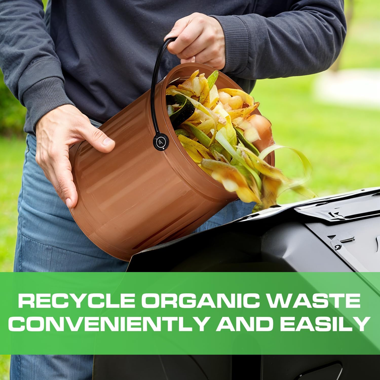 - High Quality Compost Bin Kitchen Counter: This countertop compost bin made of durable steel. Our indoor compost bin, food waste bin for kitchen is sturdy construction, ensures longevity, resists rust, and is easy to clean. Easy to carry with a sturdy handle.