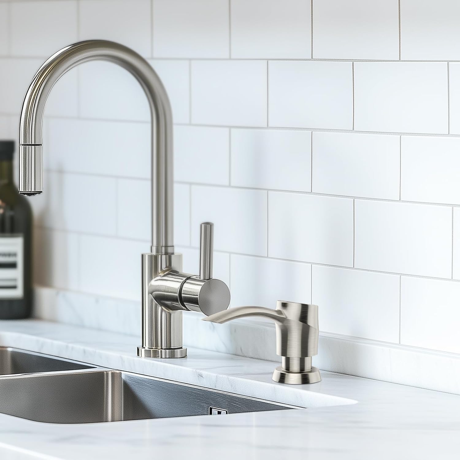 - Easy Installation: SAMODRA soap dispenser for kitchen sink can be installed in just a few minutes without plumber! PLEASE ensure that the holes on your sink are between 1-1.77 inches and the thickness of the countertop (granite, stainless steel, etc.) is no more than 2.23 inches.