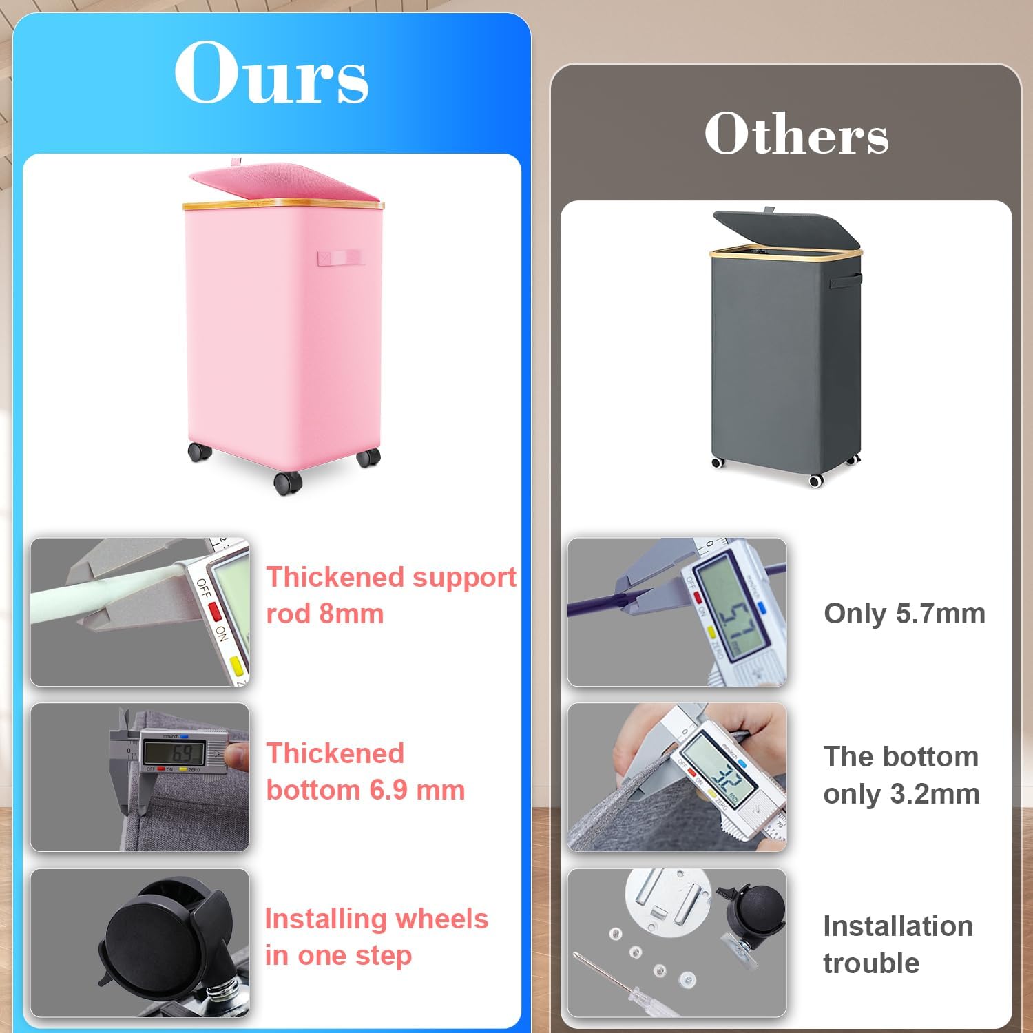 - β 4-Wheel Design with Brakes & Handles:Smooth-rolling wheels (2 lockable brakes) + dual handles let you move 80 lbs of laundry effortlessly, even on carpets.