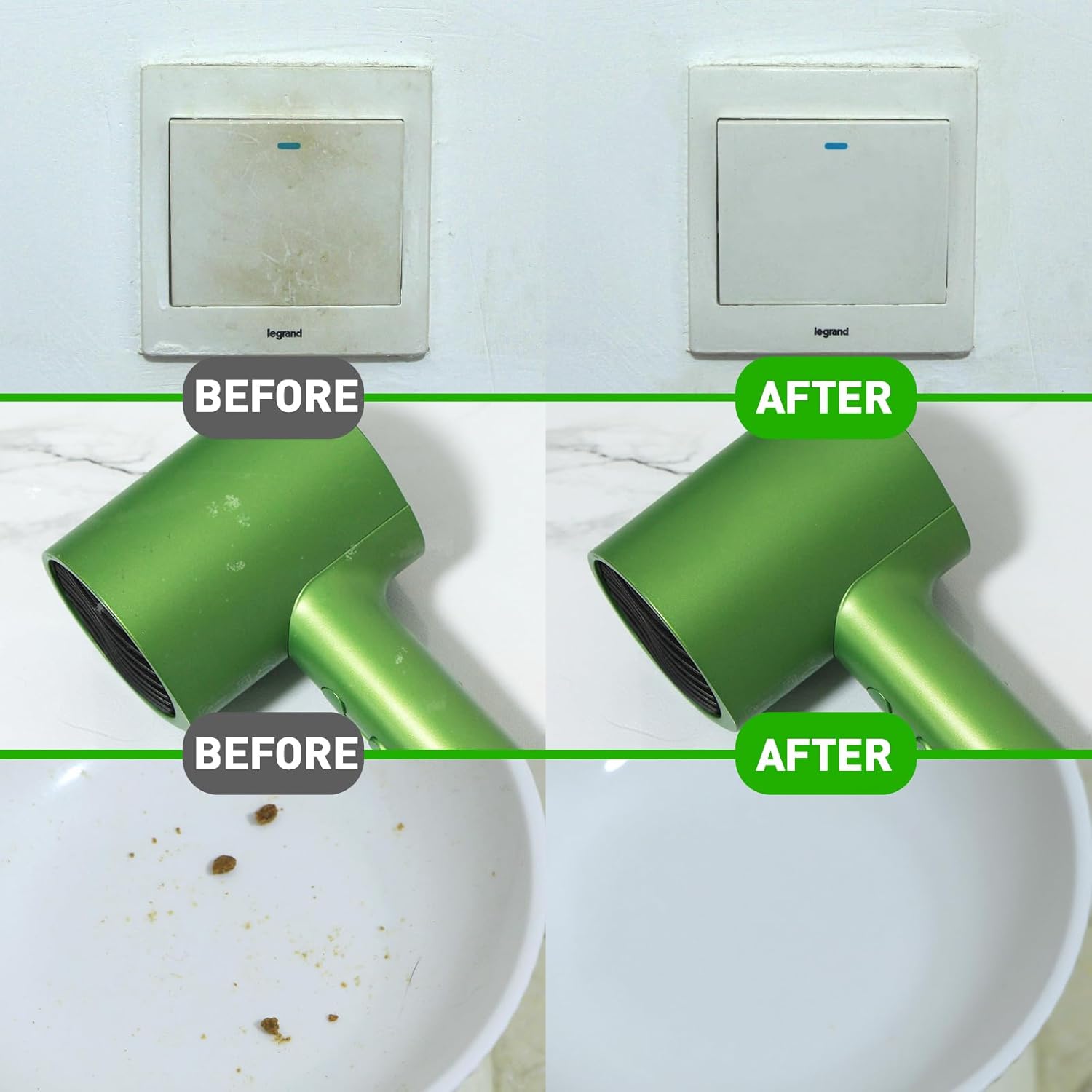 - Eraser Sponge: The eraser sponge is free from chemical detergents, so no additional detergent is needed; only water is required. Its superior cleaning ability ensures that surfaces are left cleaner and more attractive.