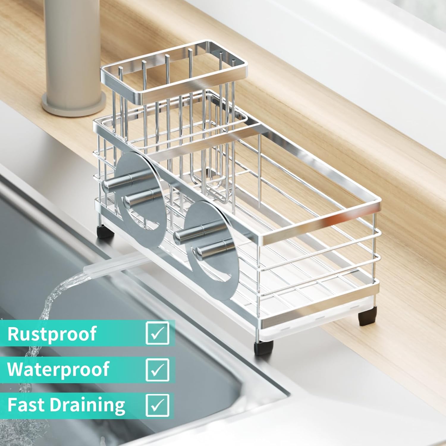 - [Durable Stainless Steel]: Constructed of 304 stainless steel, Hapirm kitchen sink organizer can effectively prevent rust even in wet conditions and has a long service life. Enjoy reliable storage with our sponge holder for kitchen sink
