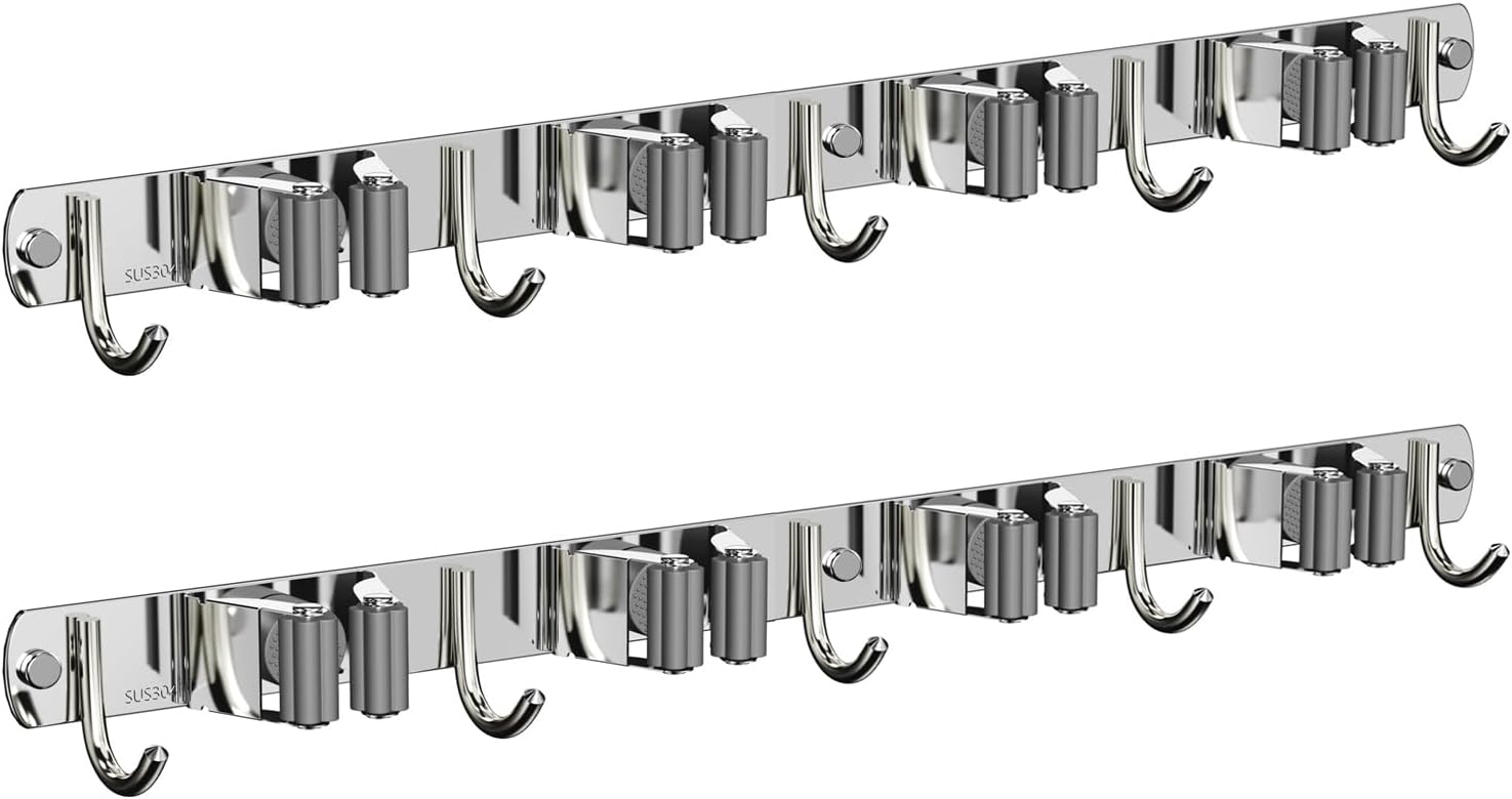 - STURDY AND FUNCTIONAL:The mop and broom holder wall mount is made of premium quality stainless steel, corrosion-resistant, rustproof and waterproof,wear-resistant, long-lasting and easy to clean