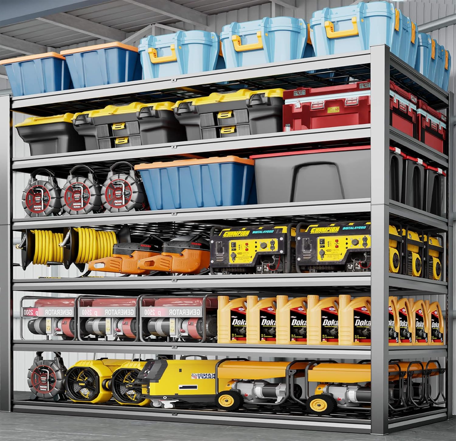 - ăSafer Garage Shelvingă We provide you with a protective cover on the bottom of the garage shelves so you don't have to worry about scratching the floor and a protective cover on the top of the shelves so you don't scratch your arms. This industrial grade metal storage shelf is perfect for use in the home.