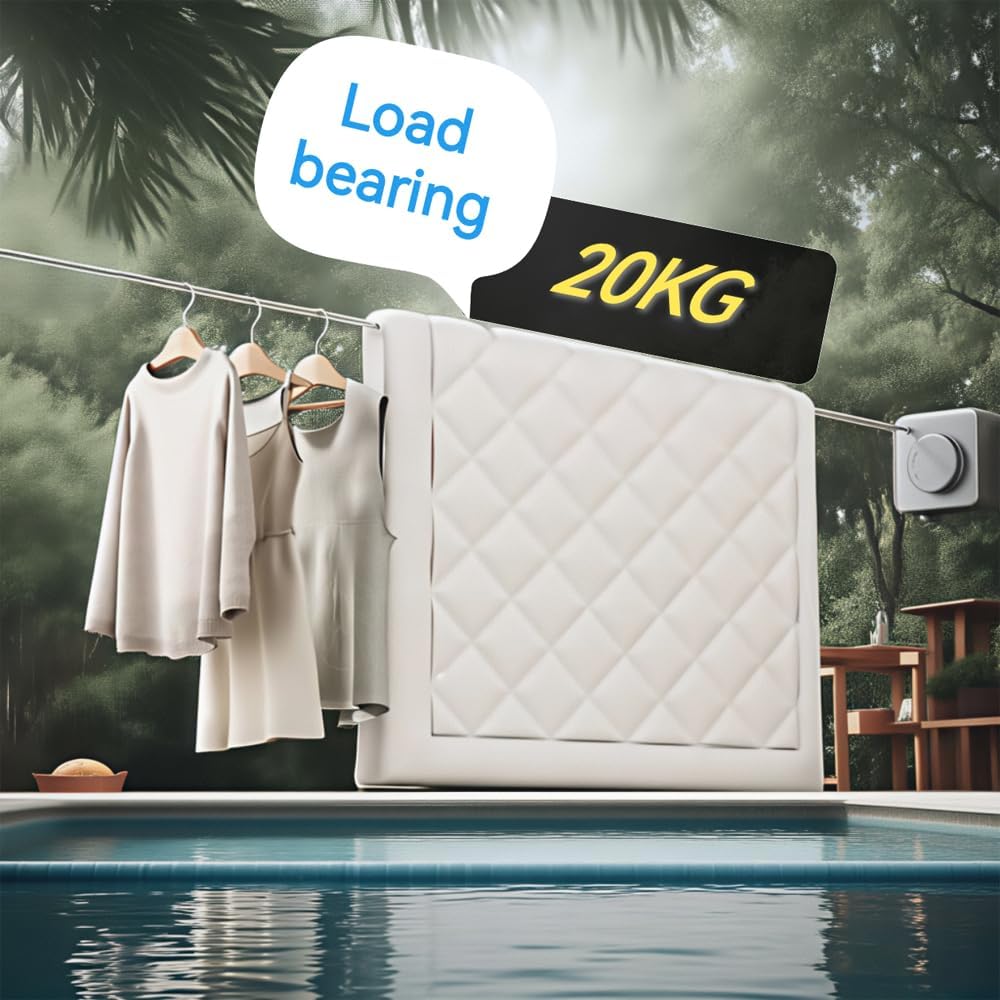 - LOAD CAPACITY: Heavy-duty retractable clothesline supports up to 44 pounds (20kg) of wet or dry clothes with sturdy stainless steel cable