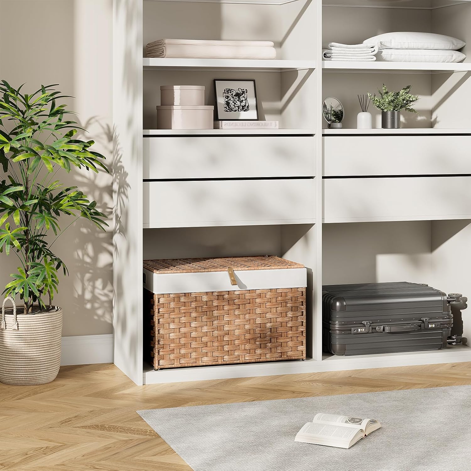 - Ultra-Spacious Storage: This 65L storage basket is a clutter-buster for bedrooms, etc. Its full-open lid lets you swiftly grab or stash clothes and blankets. No more messy chaos; it turns your space into a neat, organized haven