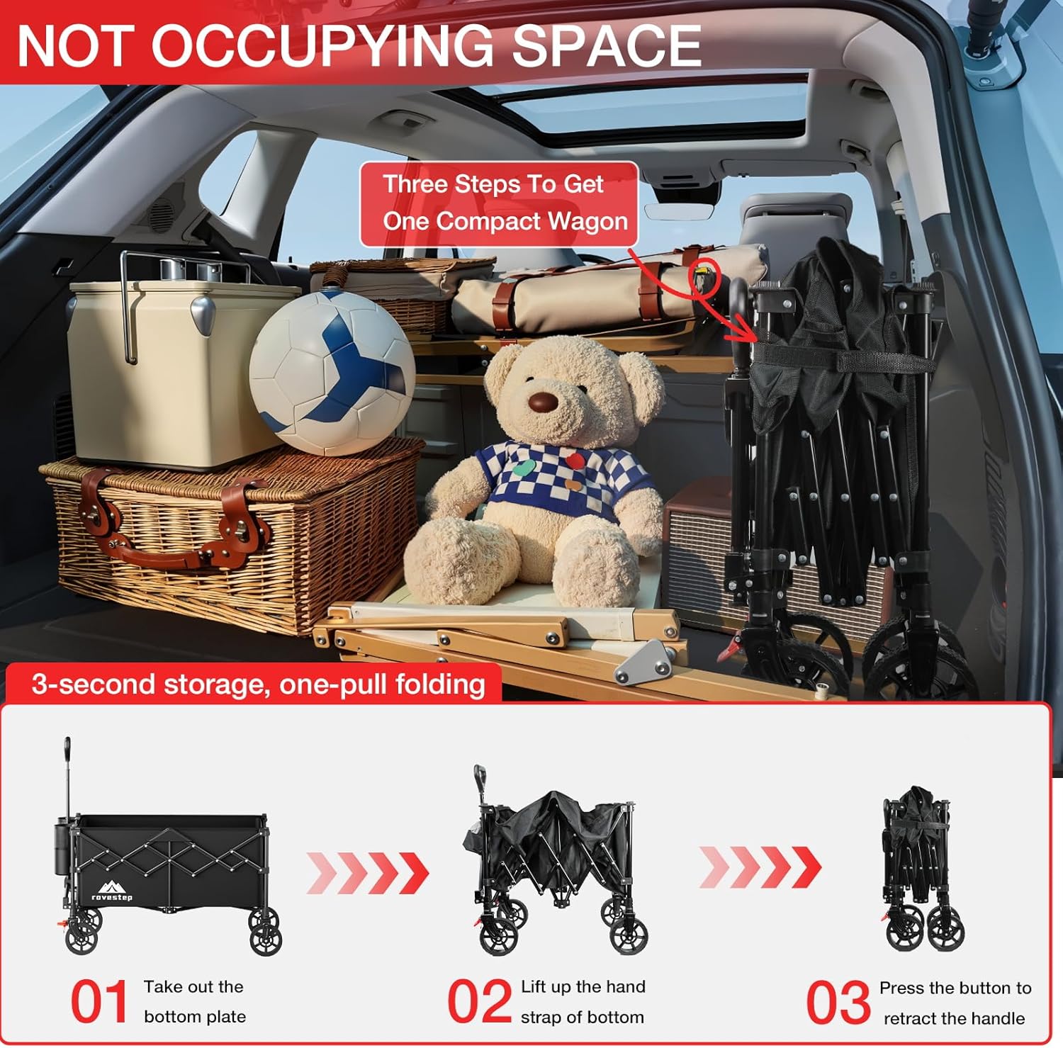 - Heavy Duty Steel Frame:This durable, heavy-duty utility wagon supports up to 360lbs, ideal for carrying groceries, garden tools, camping gear, beach supplies, sports equipment, and more for outdoor activities, errands, or transport.