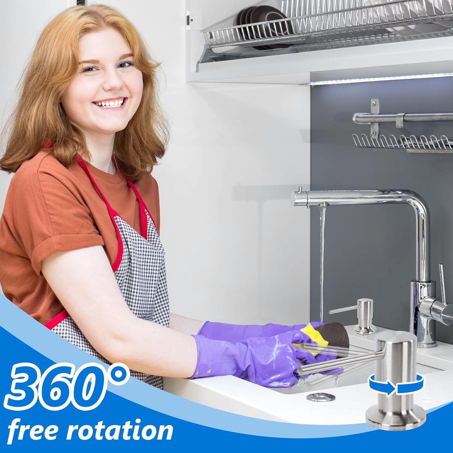 - NO MORE DIRTY: It effectively saves space under the sink and avoids crawling under the sink. The soap dispenser features a long tube kit that rotates 360 degrees freely, ready to meet the needs of different hand-washing positions.
