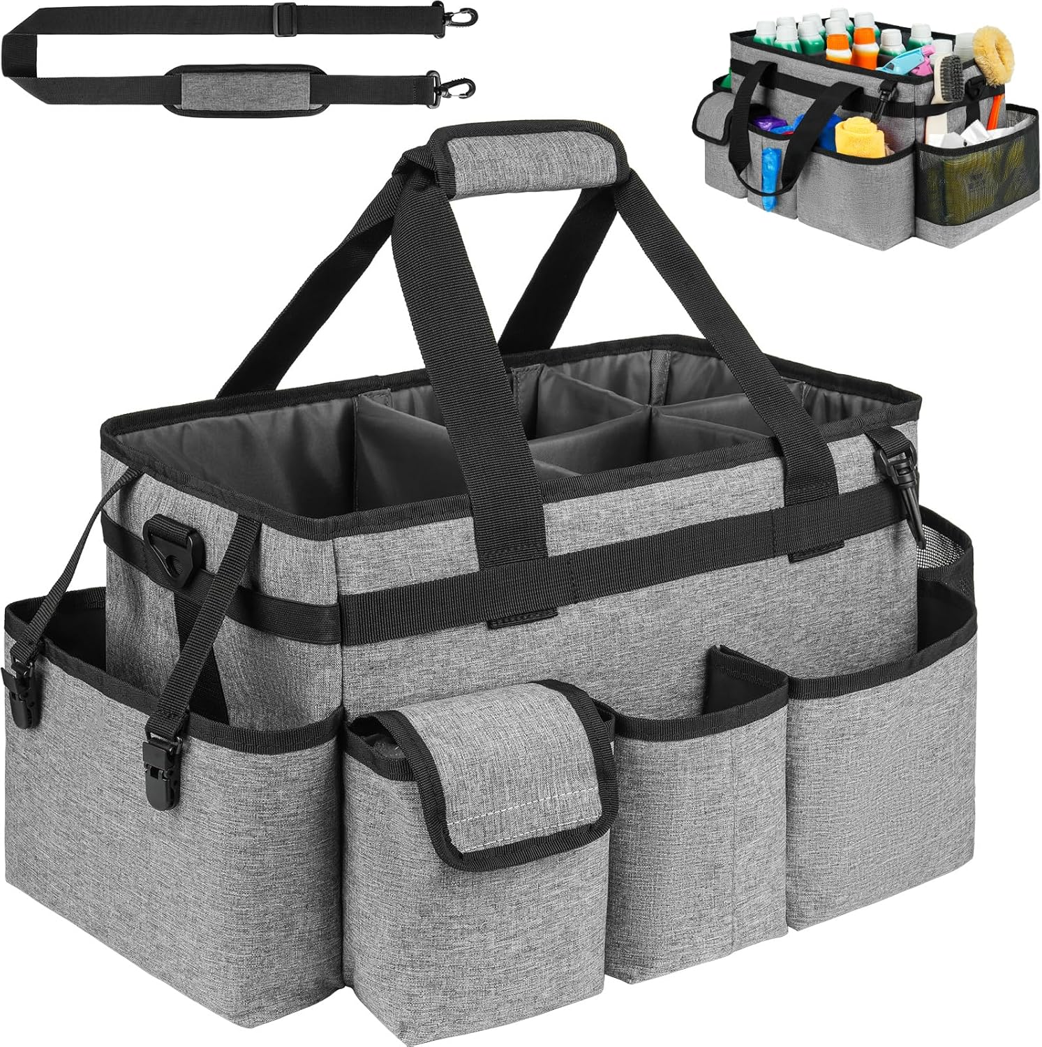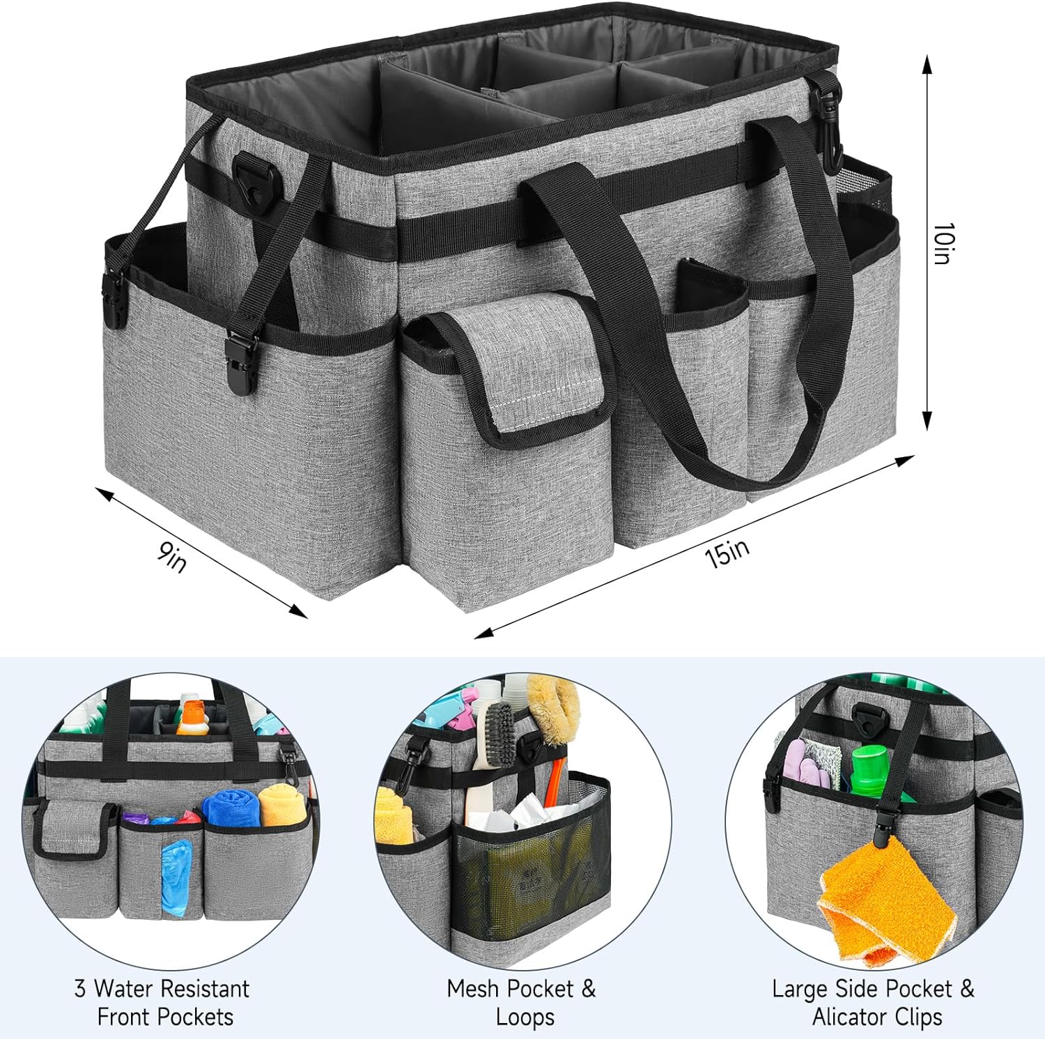 Cleaning Caddy Bag,Large Cleaning Supplies Organizer with Handle for Housekeepers,Gray