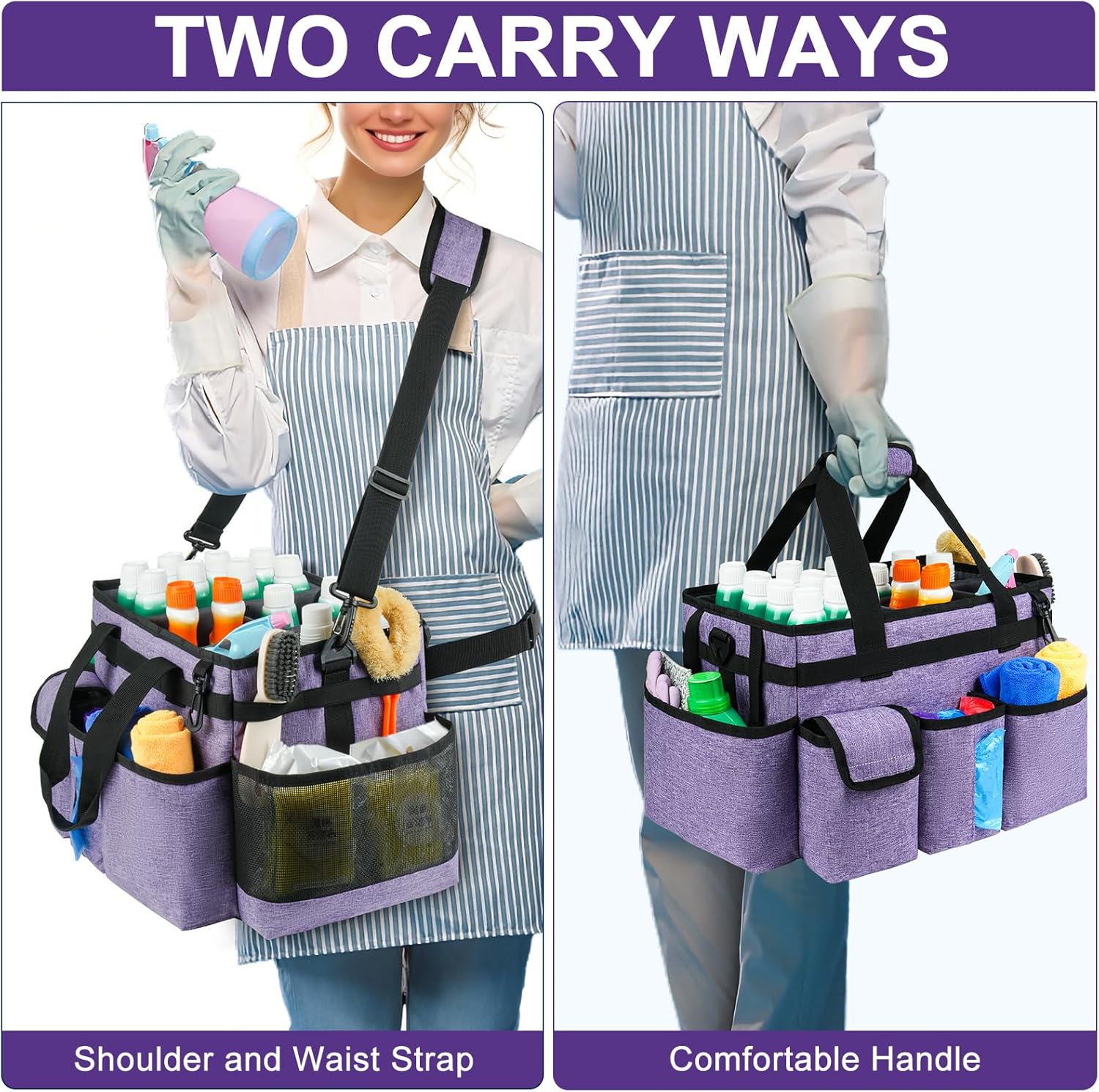 Cleaning Caddy Bag,Large Cleaning Supplies Organizer with Handle for Housekeepers,Purple