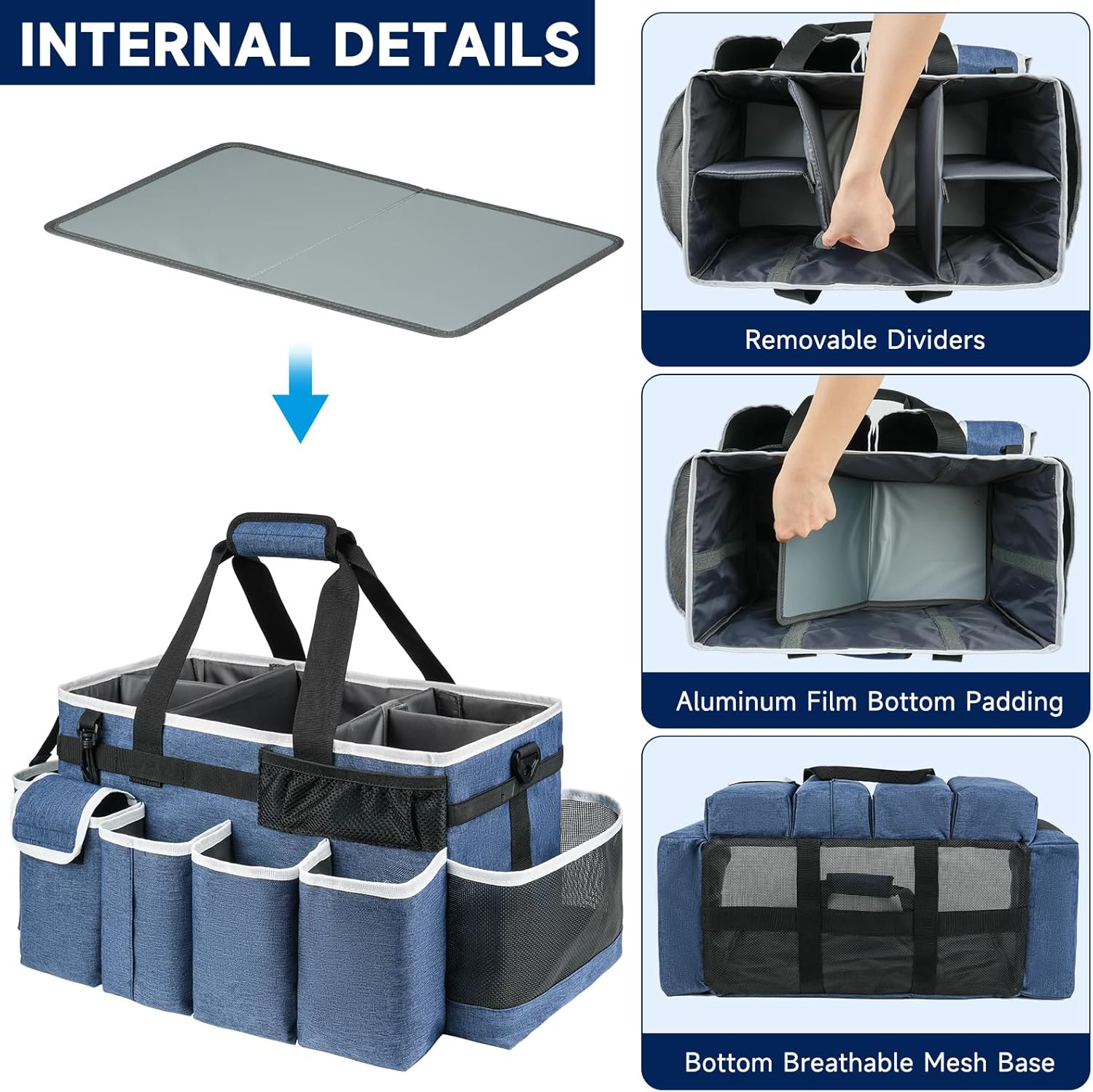 Cleaning Caddy Bag,Extra Large Cleaning Supplies Organizer with Handle for Housekeepers,Blue