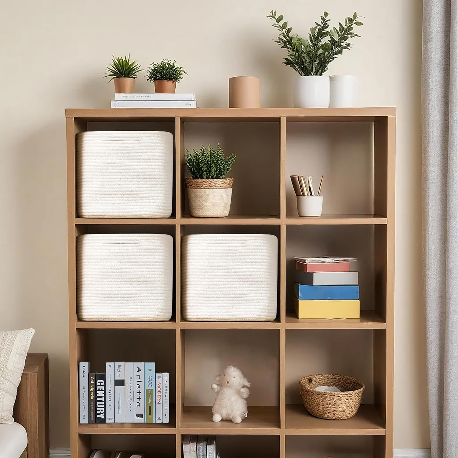 3 Pack Storage Cubes 11 Inch Cotton Rope Woven Baskets for Organizing Cube Bin Square Shelves Organizer,Classroom,Kids Toy Bins,Closet,Baby Nursery(Creamy White)