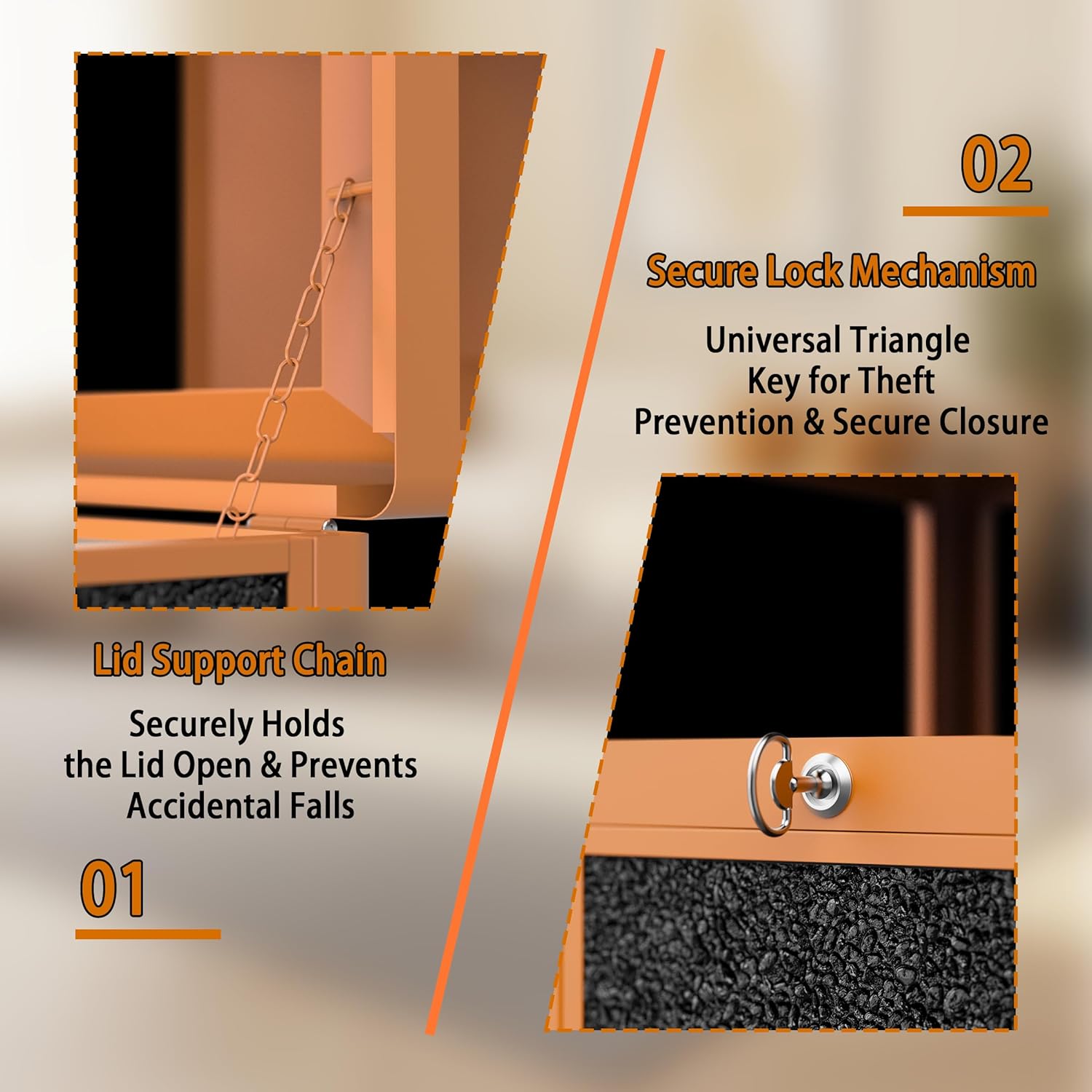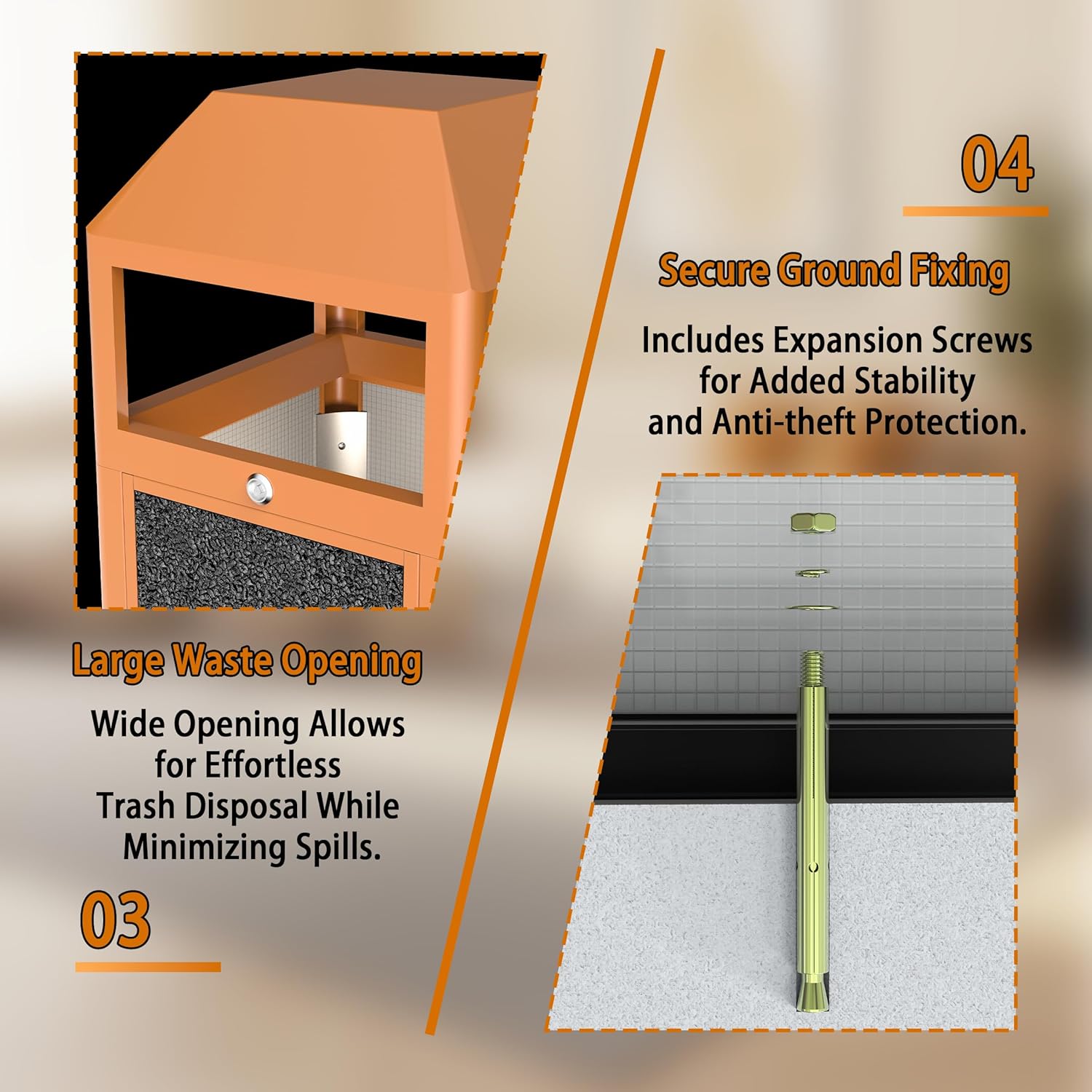 - ăLockable outdoor Garbage Can with Secure Mountingă Triangle-key lock prevents tampering, while pre-drilled holes and screws allow stable ground installation for permanent, theft-resistant placement.