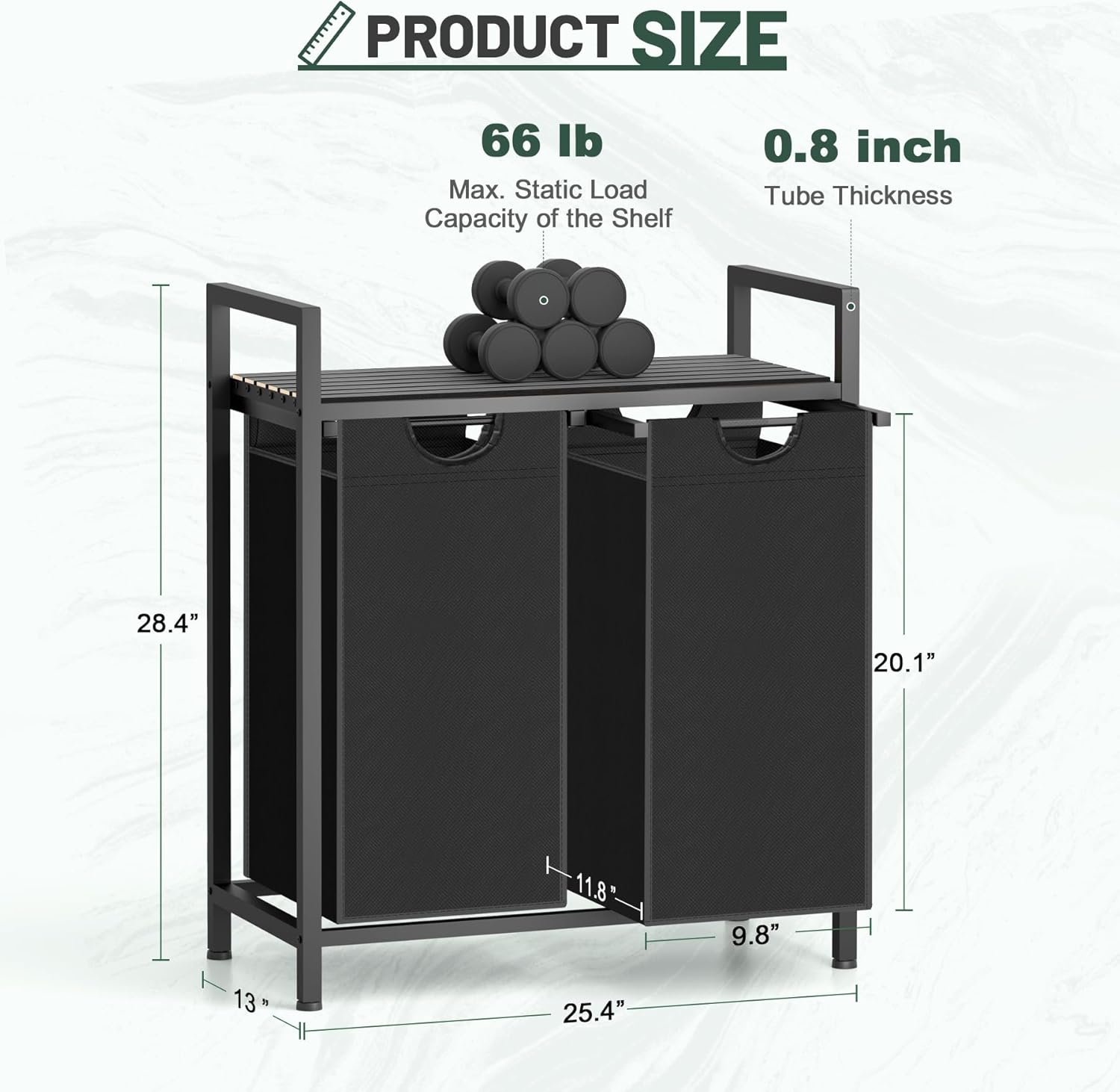 - 2 Removable Bags - The laundry hamper has a total capacity of 20 gallons, with each liner holding 10 gallons. Its 2 compartment design enables you to organize your laundry by type and separate light laundry from different family members.