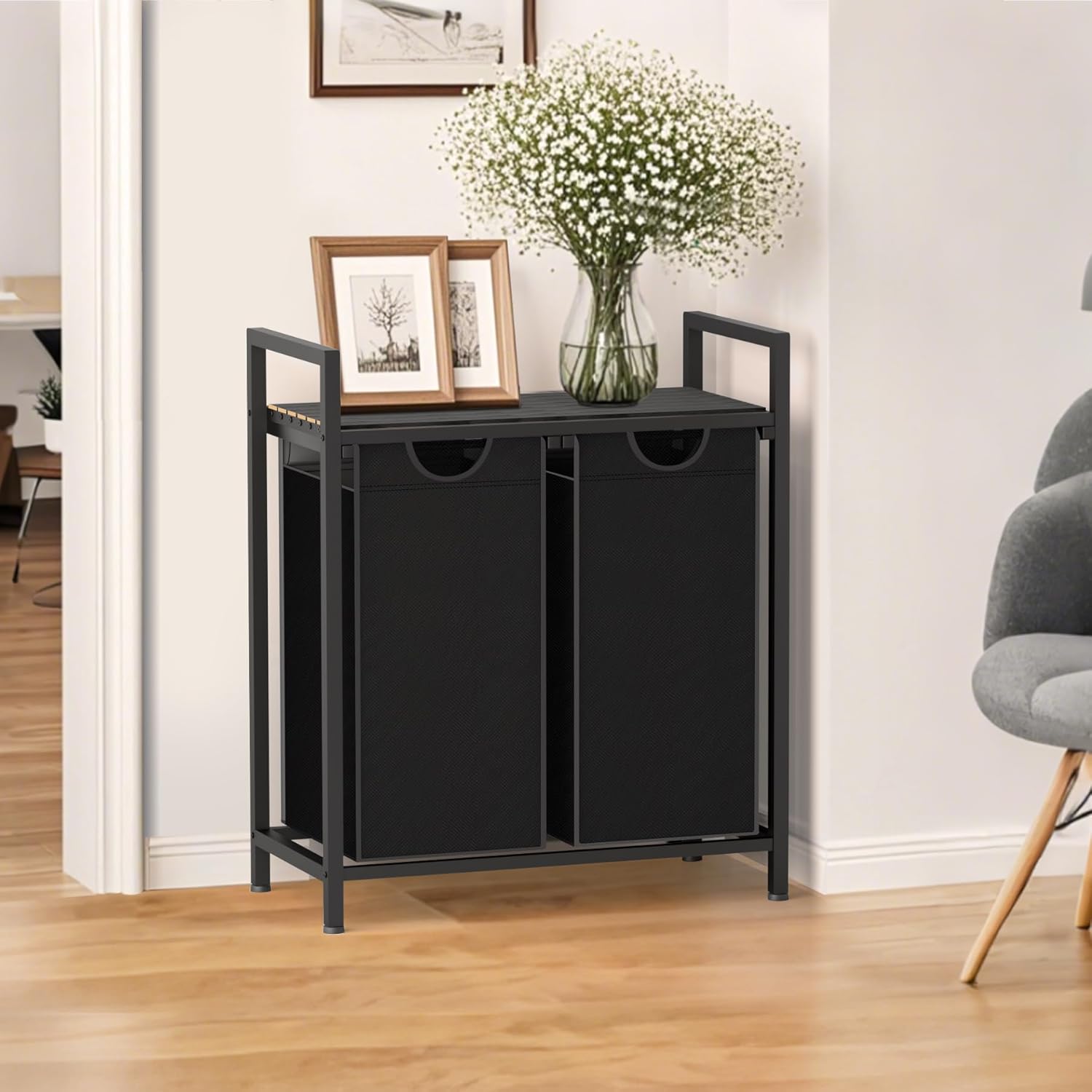 Laundry Hamper, Laundry Sorter with 2 Pull-Out Removable Oxford Fabric Bags Cloth Laundry Basket 2 x 10 Gallons (Charcoal Black)