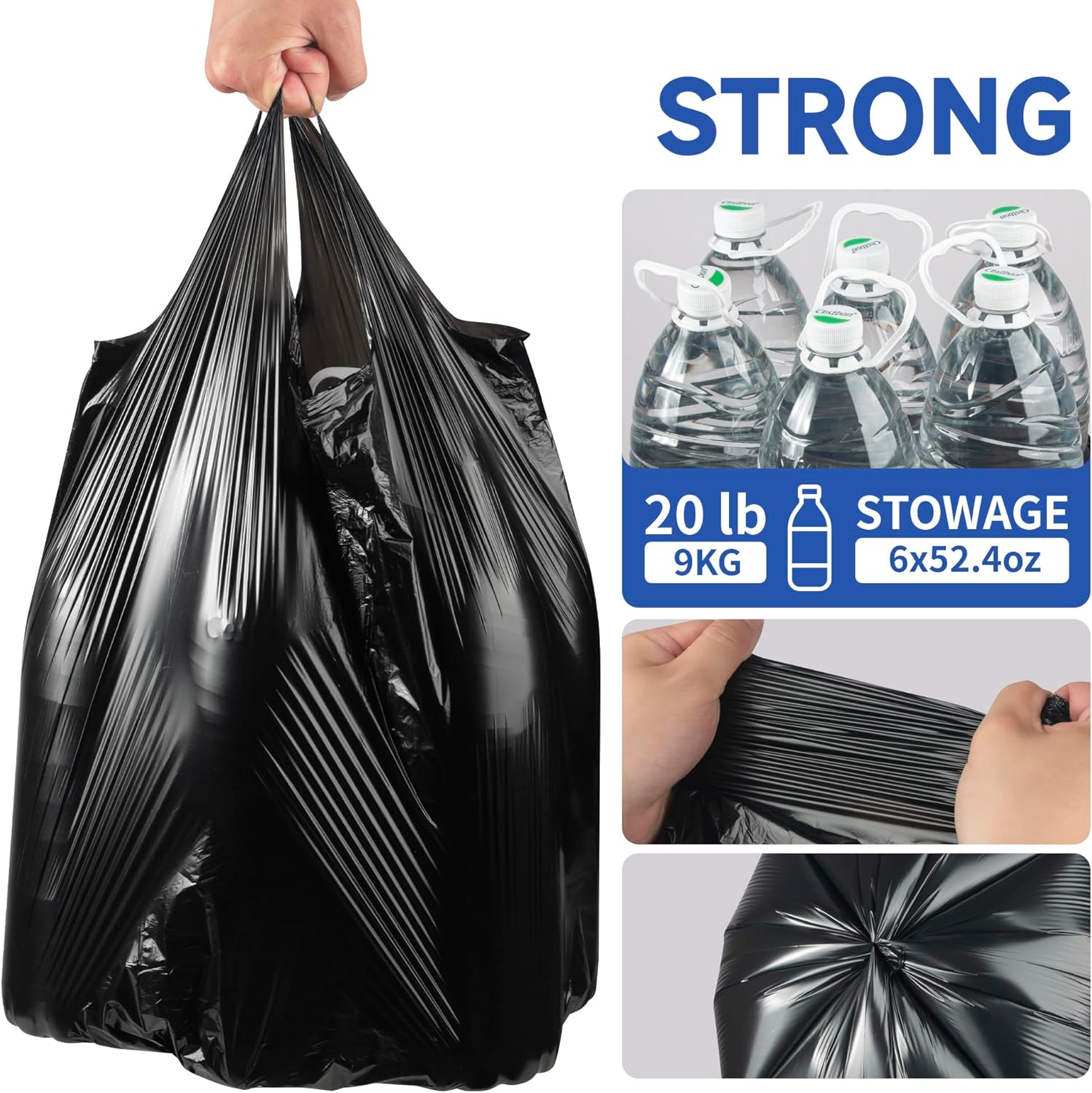 - [MORE EFFICIENT AND CONVENIENT USE] Sturdy handles with a 22-pound load capacity make lifting easy and durable. The perforated connections between garbage bags allow easy tearing for quick access, preventing accidental bag rupture.