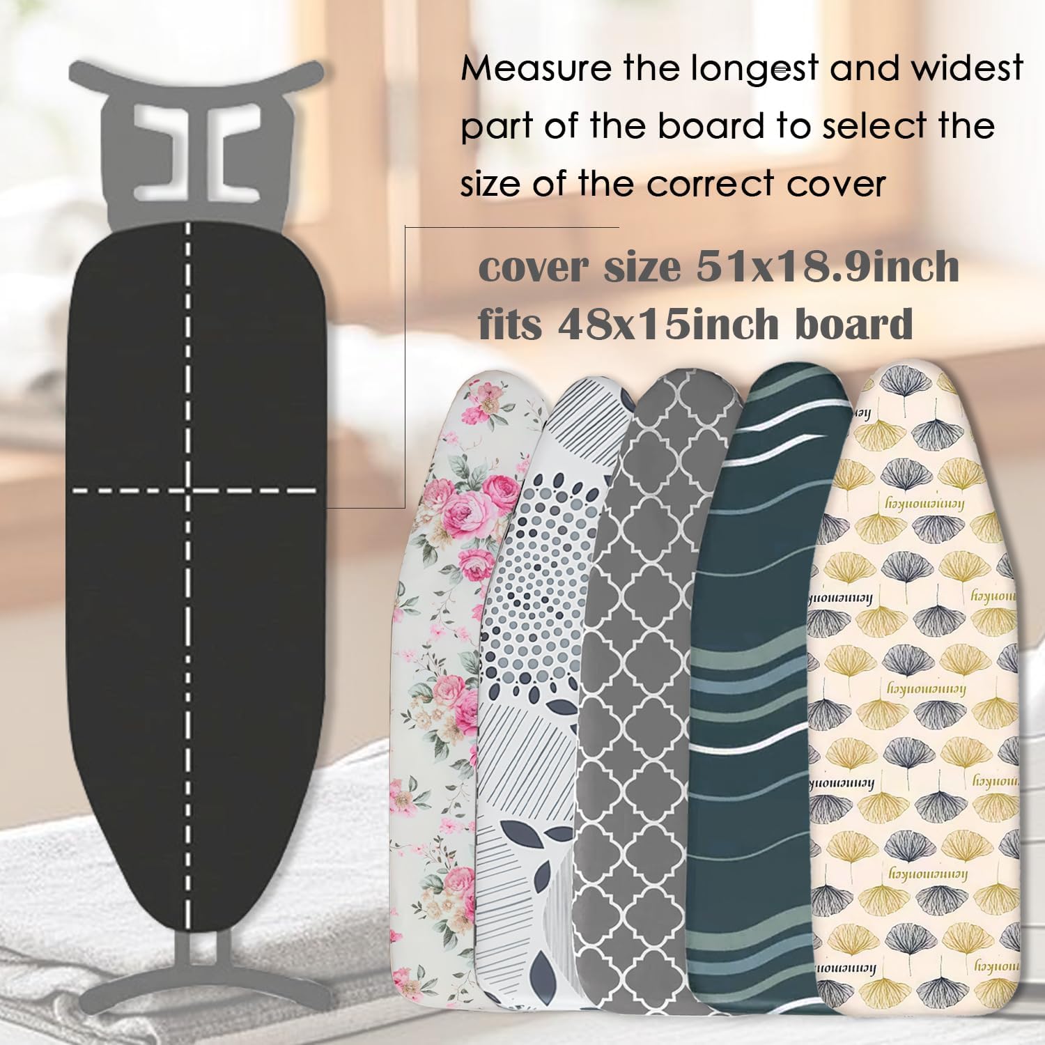 • 【Size Information】:-Made of 100% cotton fabric material, this ironing board cover and pad fits standard sizes ironing board of 15inch wide and 48inch long.Please measure your ironing board size before ordering.