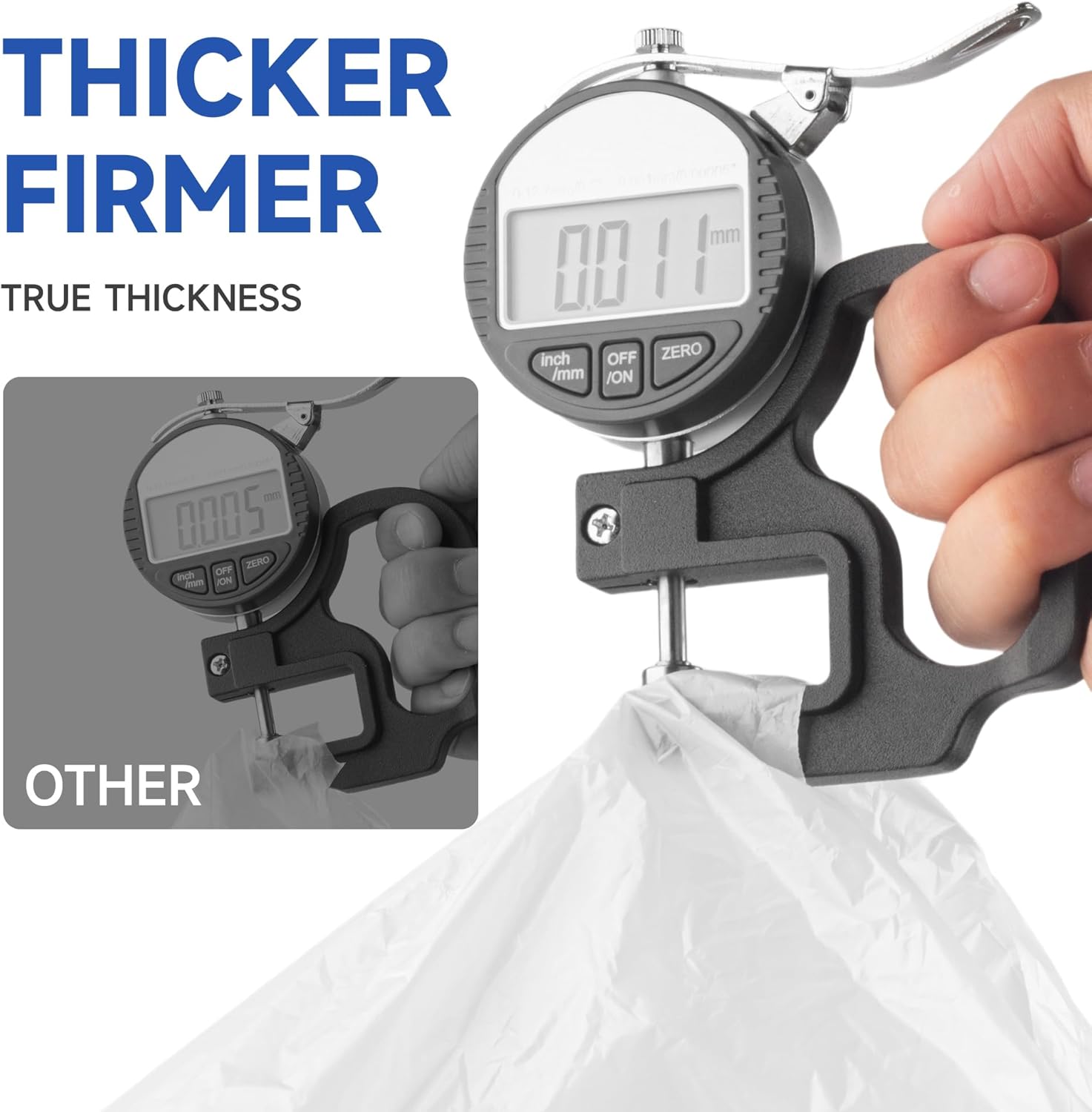 - [TEAR RESISTANCE] Much thicker than regular rubbish bags with excellent tear and tensile resistance. Enhanced durability ensures that they can withstand sharp objects and heavy weights without tearing, providing you with a reliable, long-lasting trash containment solution.