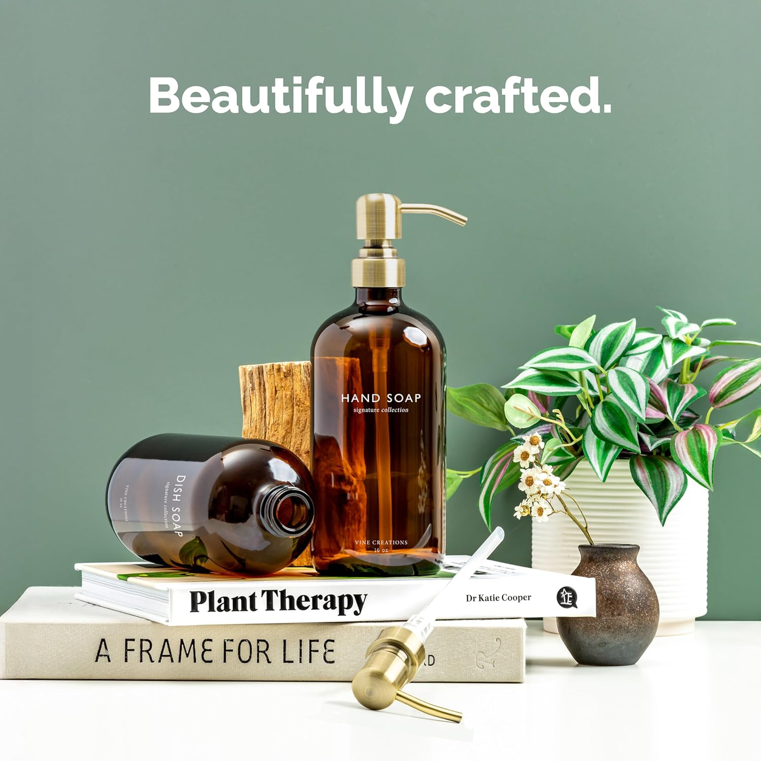 - BUILT TO PERFORM – Each dispenser is topped with a brushed brass stainless steel pump that’s as durable as it is refined. Rust-resistant, smooth to use, and designed to complement any modern kitchen or bathroom.