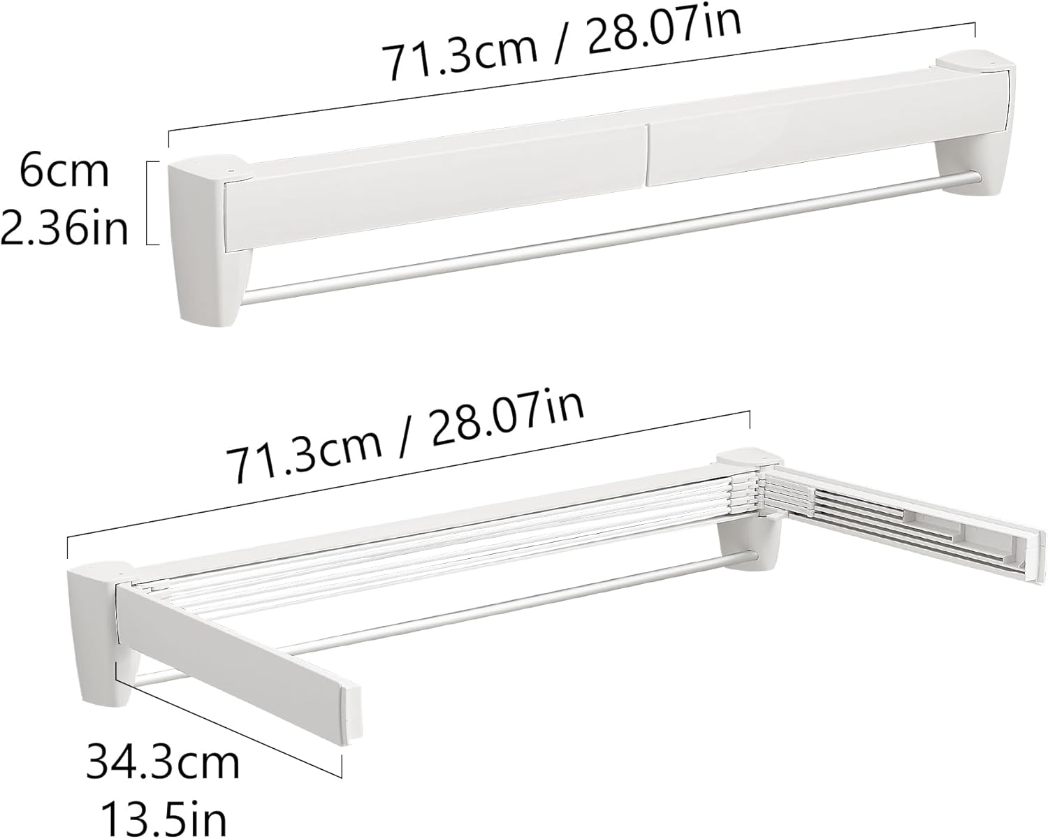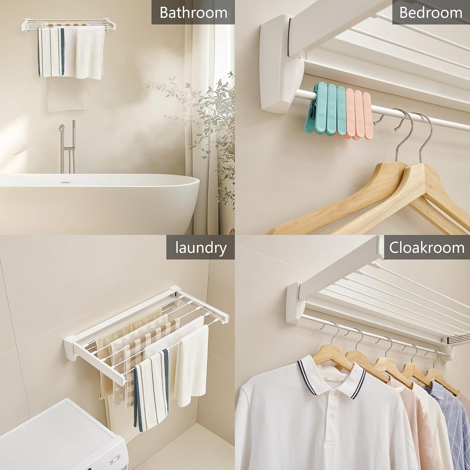 - Save Space: Folding for indoor or outdoor, this clothes drying rack is a great space saver. Compact, retractable wall-mounted design to maximize your limited space or add elegance to your spaces. Great for space constrained homes, apartments, hotels, laundry rooms. When not in use, fold it quickly to store until ready to use again