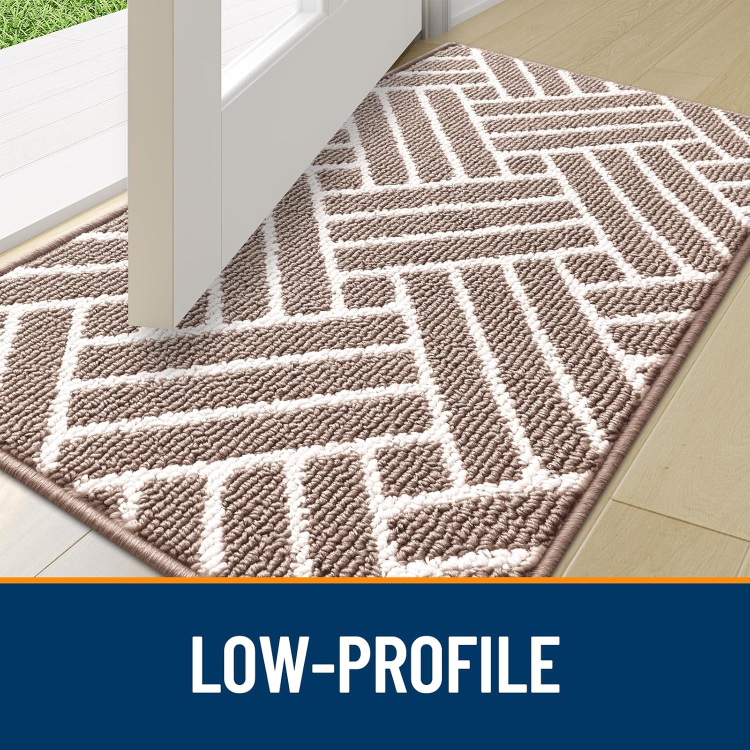 - [LOW-PROFILE DESIGN]: With a sleek geometric pattern, this mat adds a modern touch to your home. Its low-profile design ensures it fits smoothly under your door without obstructing movement, making it the ideal doormat to elevate your home's aesthetic.