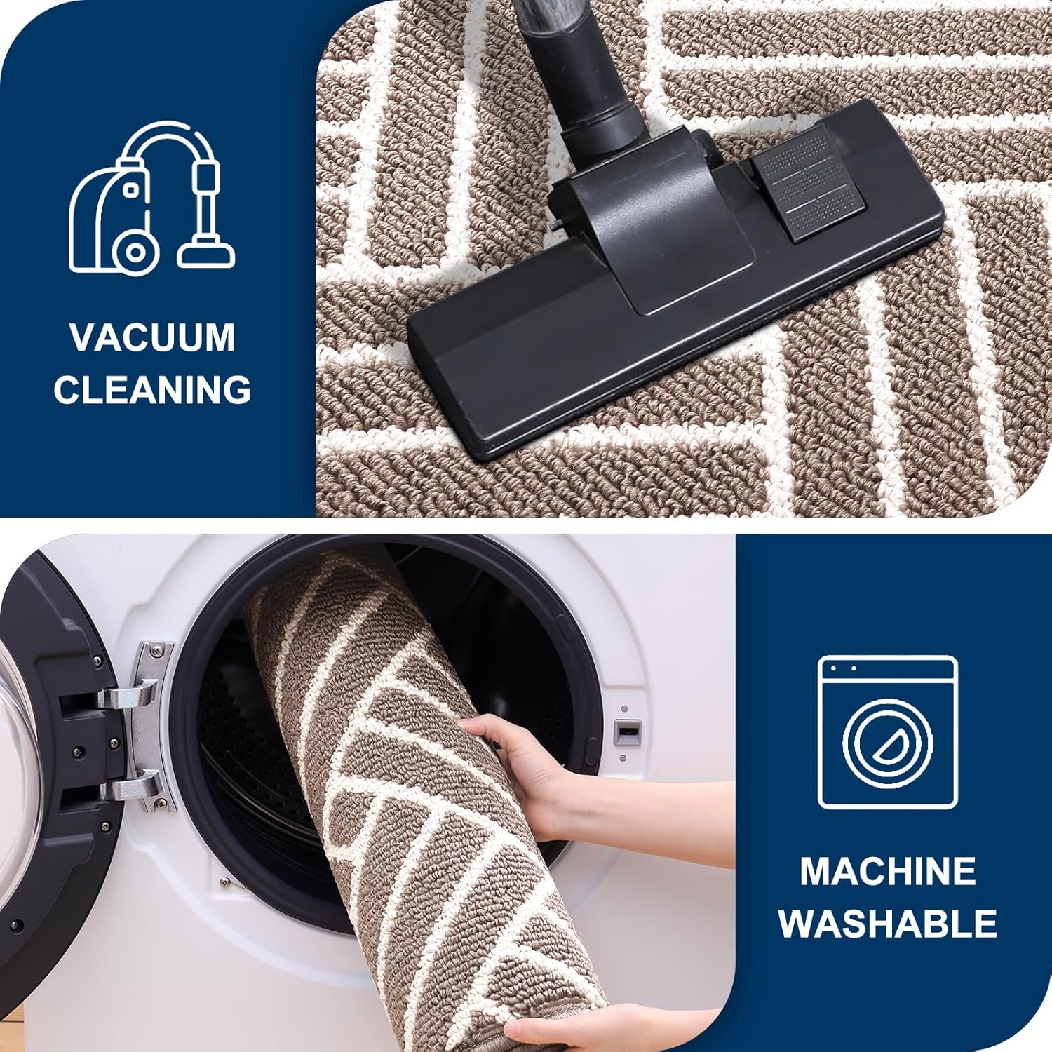 - [EASY CLEANING AND MAINTENANCE]: Cleaning the indoor entrance mat is simple and hassle-free. Easily shake off dirt, or use a broom or vacuum for regular cleaning. For a deeper clean, simply rinse it with a hose or machine wash with cold water.