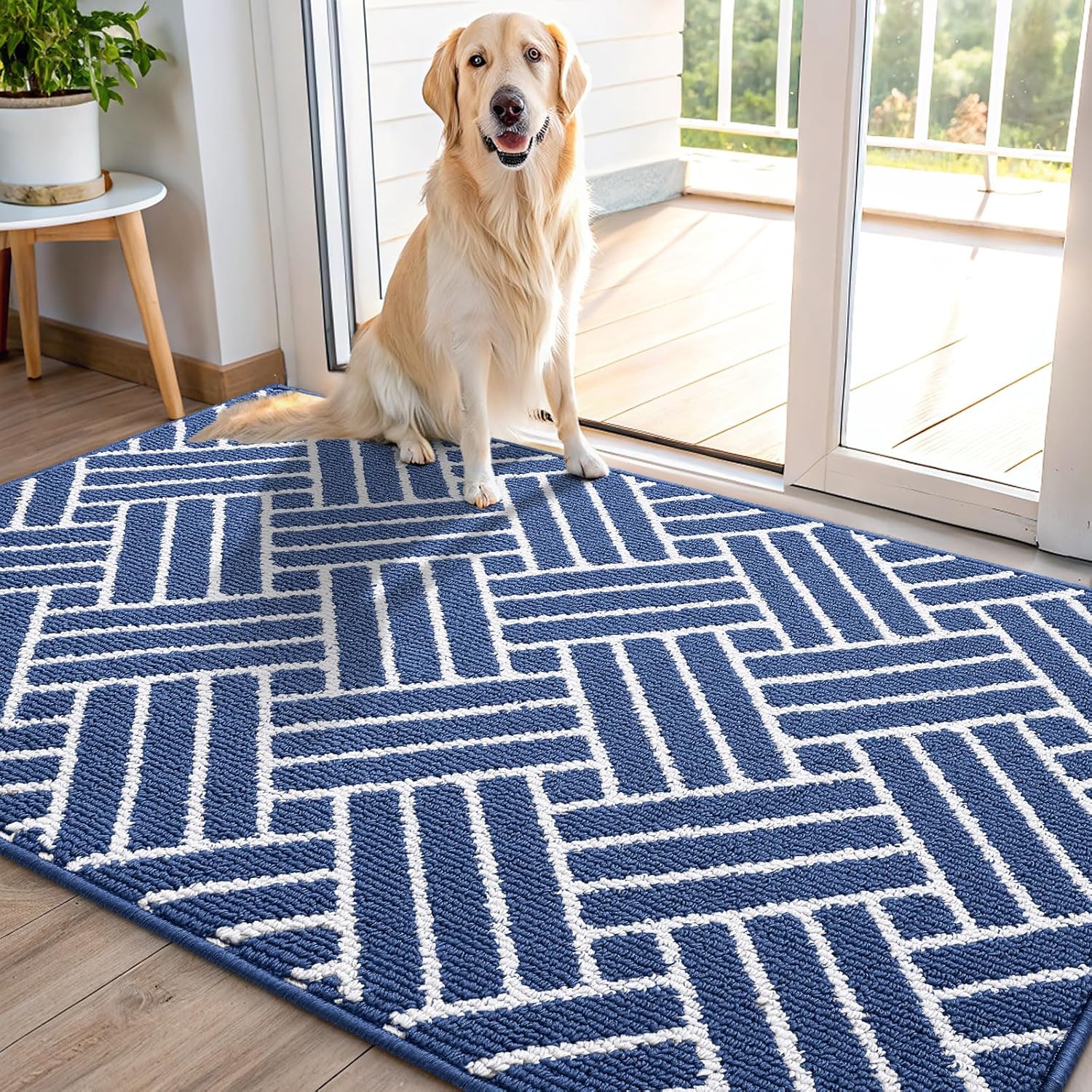 OLANLY Indoor Door Mat, 40x32 Inch, Dirt Resistant and Absorbent, Non-Slip Rubber Backing Floor Mats, Easy Clean Low-Profile Doormat for Entryway, Front Door, and Inside Entrance, Navy
