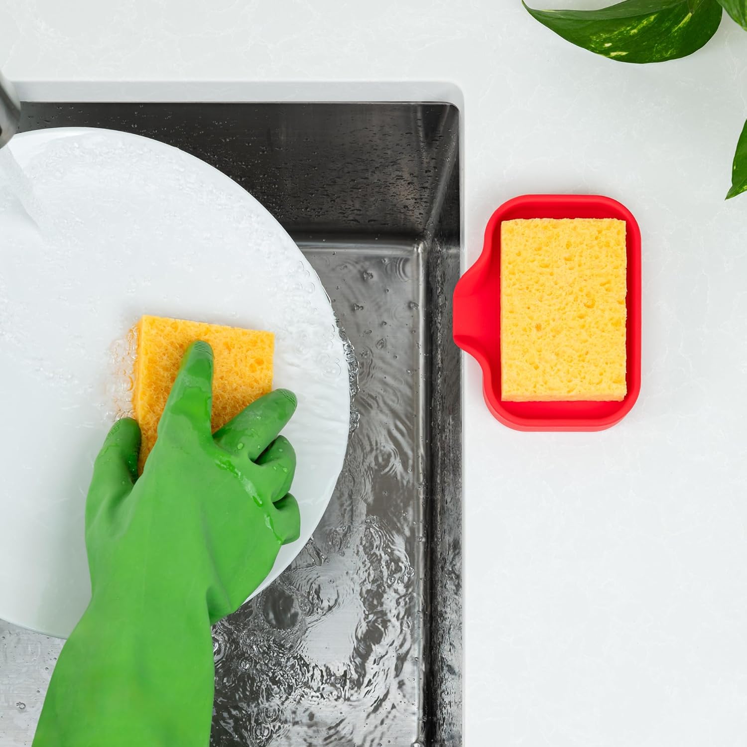 Zulay Kitchen Small Silicone Sponge Holder (4.9x3.3”) – Space-Saving Sink Organizer Tray for Sponge, Soap, Brush & More – Compact Non-Slip Dish for Kitchen & Bathroom (Red)