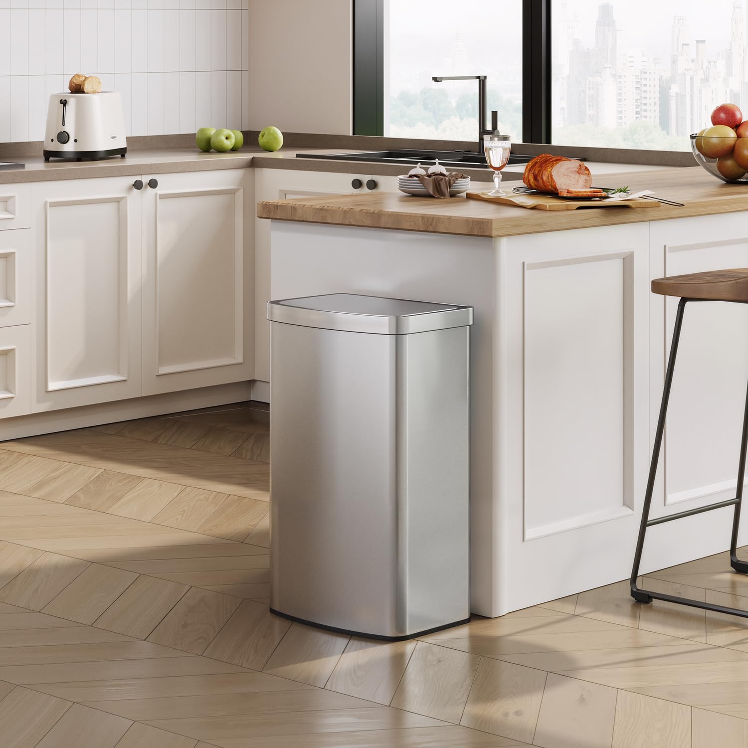 - Stylish & Spacious: With a 60L (15.8-gallon) large capacity, the trash can offers ample space for daily waste disposal. Crafted from metal material that resists fingerprints and is easy to clean, it combines practicality with a modern, stylish look suitable for any space.​