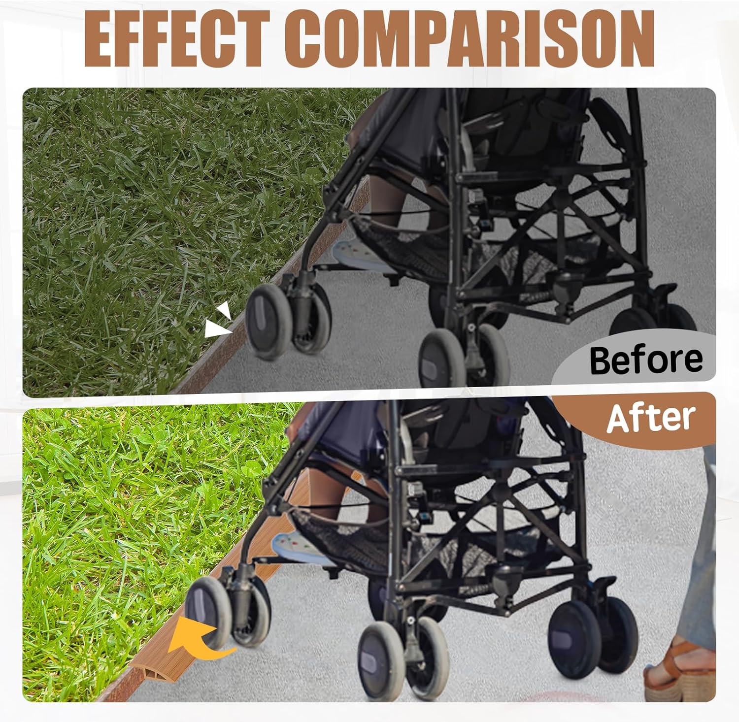 - 【Installation Method】Before installation, please ensure that the installation position is kept clean, dry and flat, as installation on uneven and dusty surfaces will affect the stickiness and use effect of the product. When installing floor transition is too long, just cut it with scissors. After the paste is completed, You can put a weight on it and let it sit for 1 hour to make the product more firmly installed