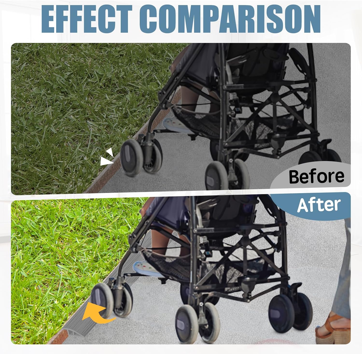 - 【Product Size】Door transition strip long 79", wide 1.97", suitable for thresholds within 0.39" in height. In order to facilitate transportation, the product is in a curled state when it is received, and it can be bent in the opposite direction transition strip before use to return it to a straight state for easy installation