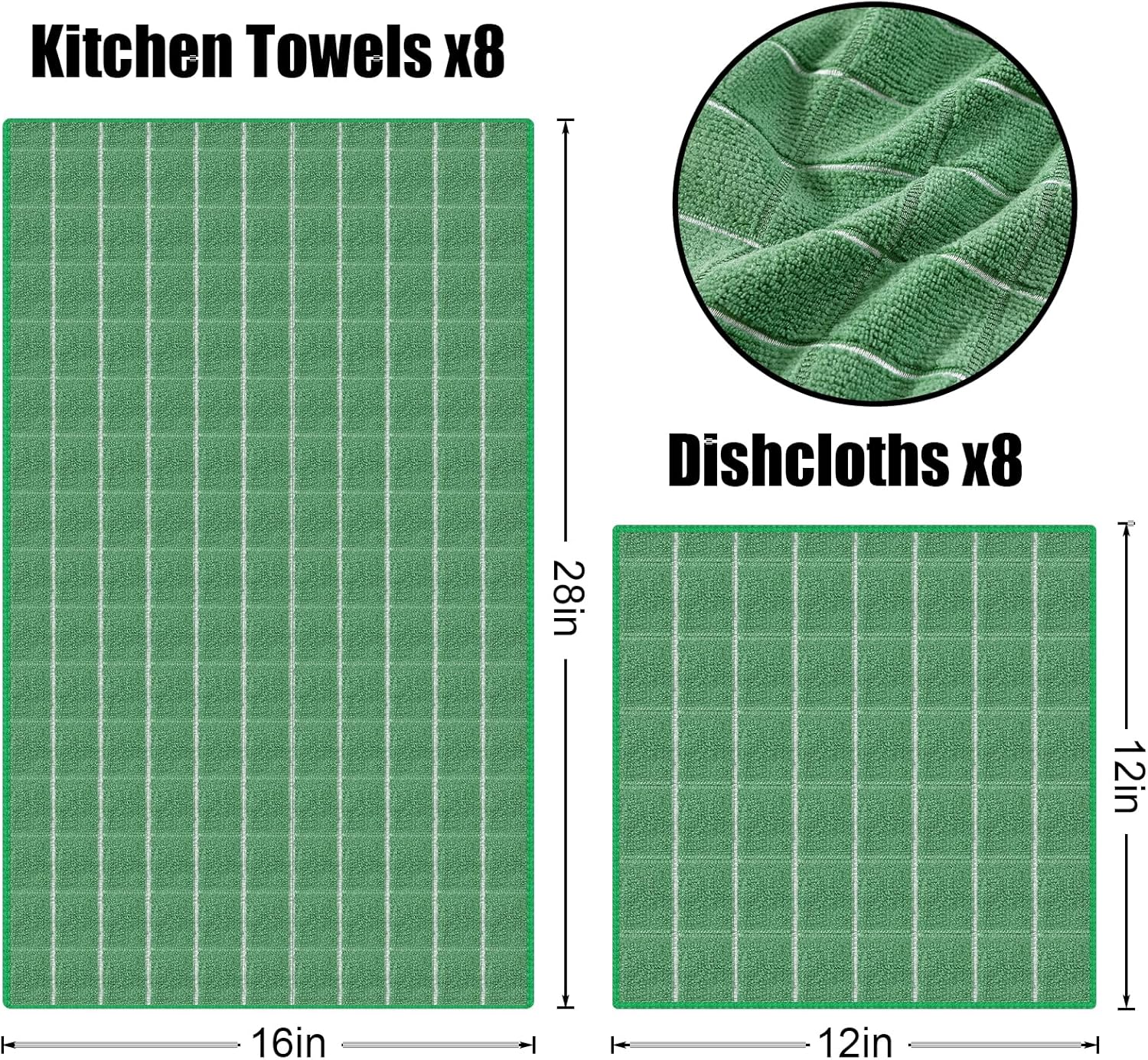Homaxy Microfiber Kitchen Towels and Dishcloths Set, 16 Pack Soft and Absorbent Dish Hand Towels Bulk, 28 x 16 Inch & 12 x 12 Inch Quick Drying Rags for Washing Dishes, Grass Green