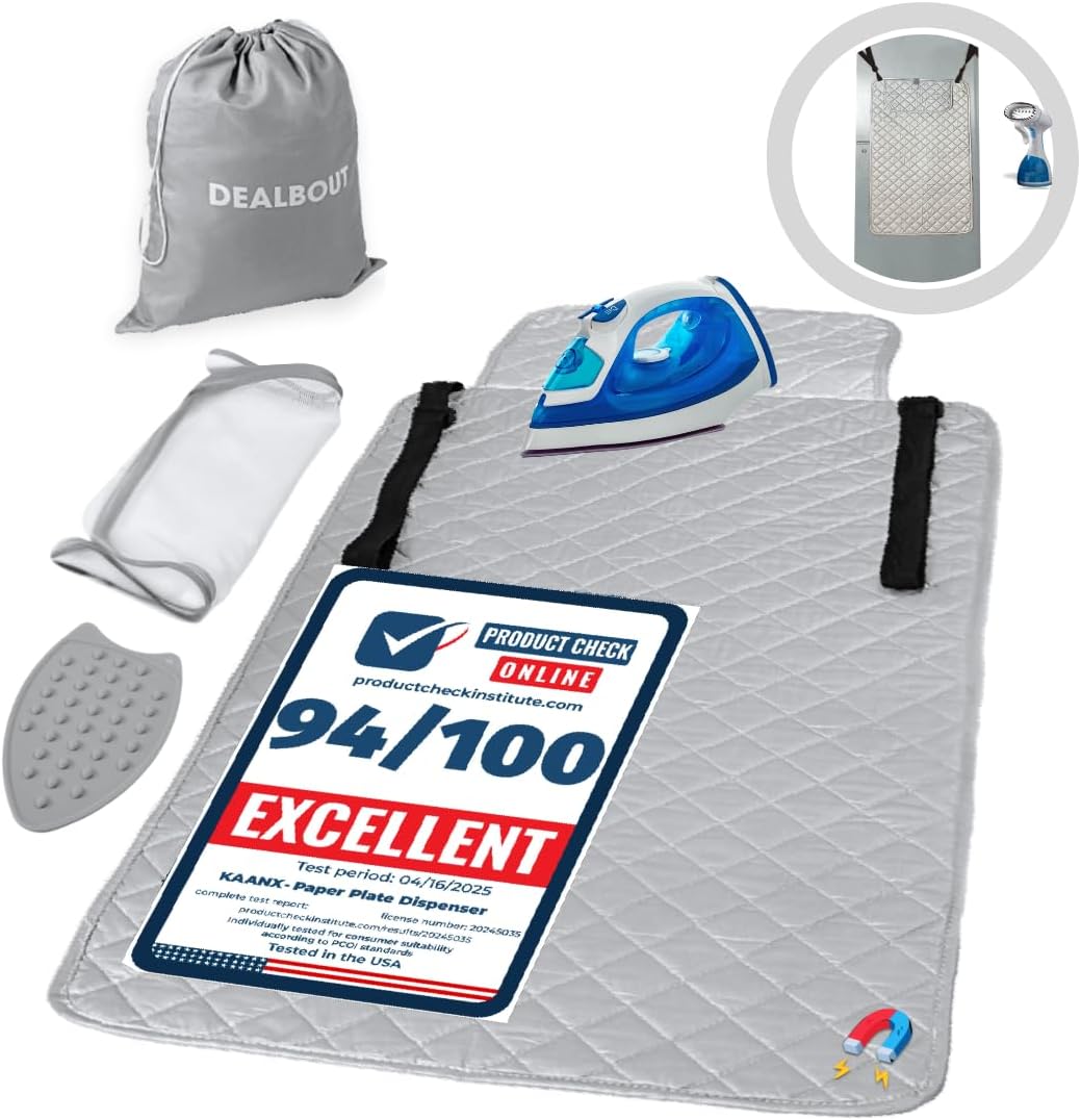 - โ๐ฆ๐ฎ๐๐ฒ ๐๐ถ๐บ๐ฒ : Turn any flat surface into a convenient ironing pad This magnet heat resistant foldable iron padding mat is designed for quick hassle free touch ups on countertops washers dryers tabletops and dorm rooms Its quilted non slip backing ensures stability while the insulated cover protects fabrics and surfaces from heat and moisture Lightweight and compact it folds or rolls up easily into the included drawstring bag for organized storage Perfect for small spaces RVs laundry rooms and daily use no bulky wall ironing board full size needed