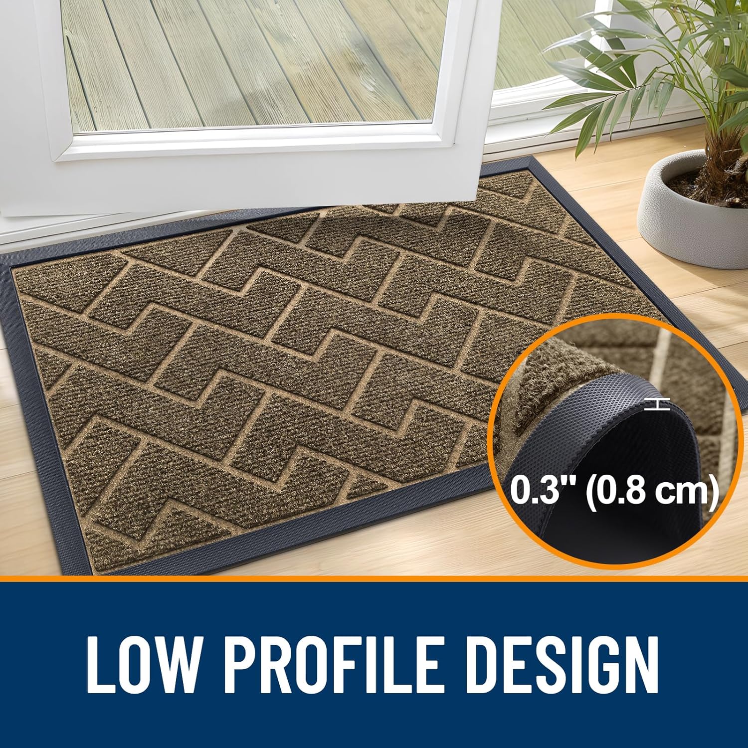 OLANLY Front Door Mat Indoor Outdoor Entrance, Waterproof All-Season, All-Weather Doormat, Sturdy Natural Rubber, Low Profile, Easy Clean Patio Porch Entryway Mat, Herringbone Brick (Brown, 59x23)