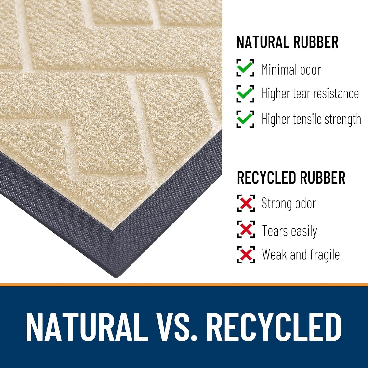 - [STURDY NATURAL RUBBER BACKING] The OLANLY heavy-duty door mat features an ultra-thin design, allowing it to effortlessly glide under most doors without jamming or curling. Crafted with a sturdy natural rubber backing, our product offers higher tensile strength, increased tear resistance, and less odor compared to synthetic rubber.
