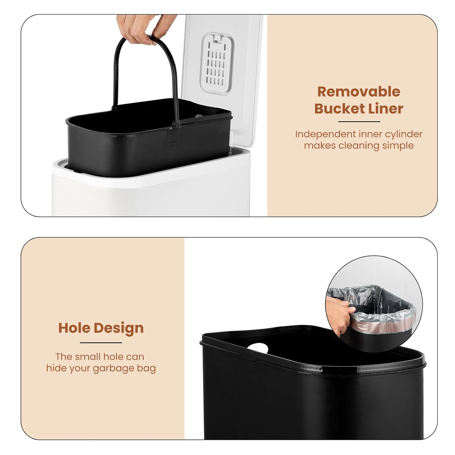 - Removable Plastic Inner Bucket: The bin comes with a removable plastic inner bucket, making it convenient to empty and clean. You can easily take out the inner bucket to dispose of the garbage.