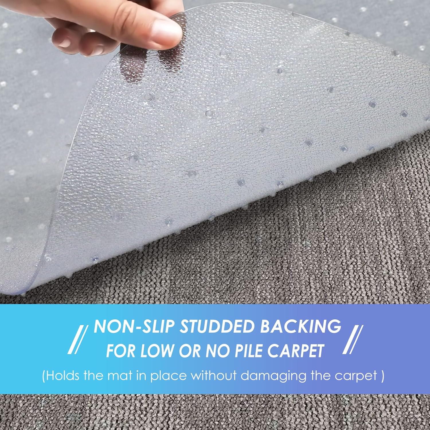 - Enough Grip For Low Pile Carpet:The nail of the back holds the floor mat for office chair firmly to the carpet and won't slide around. The office chair moves more easily during daily work and can help reduce the risk of leg fatigue.