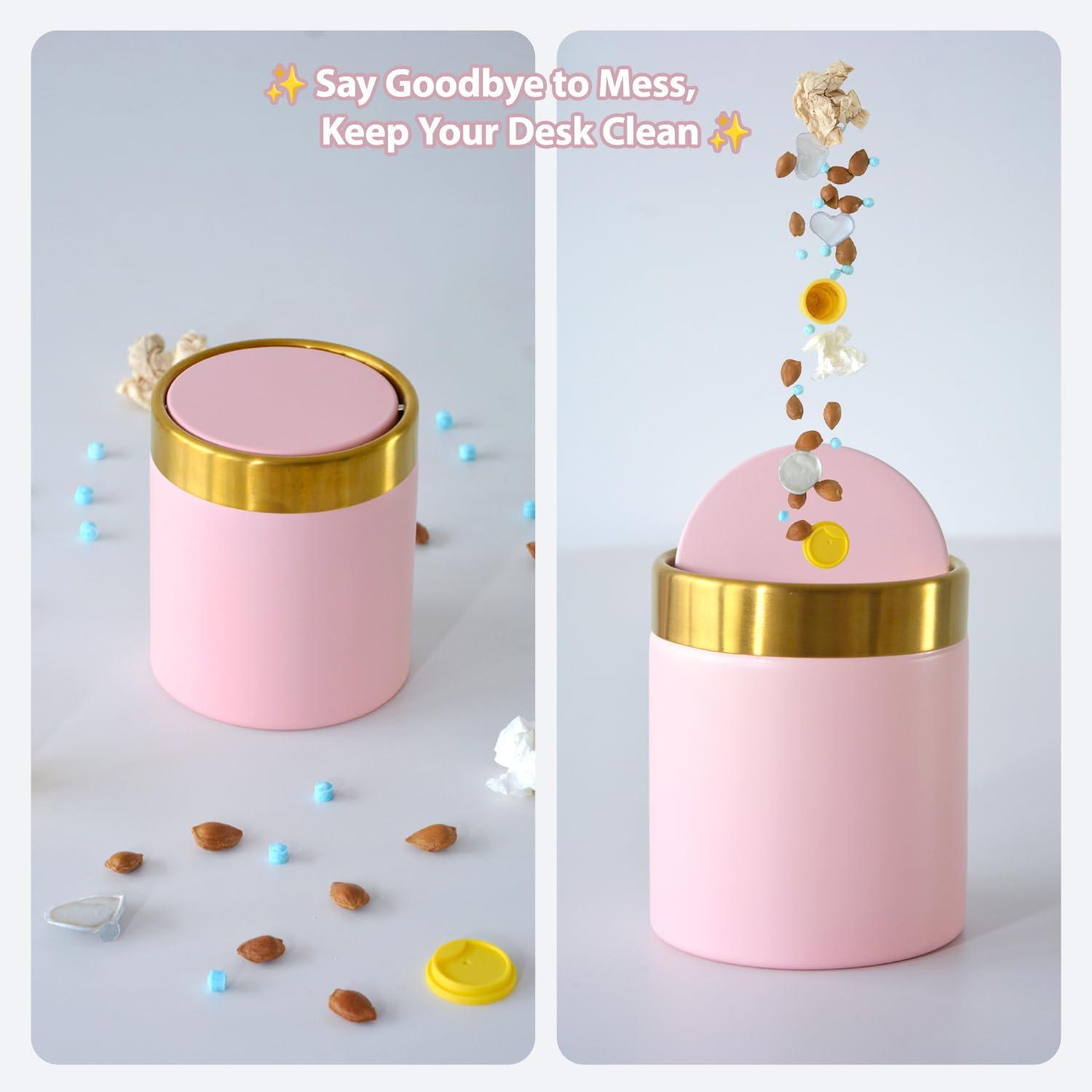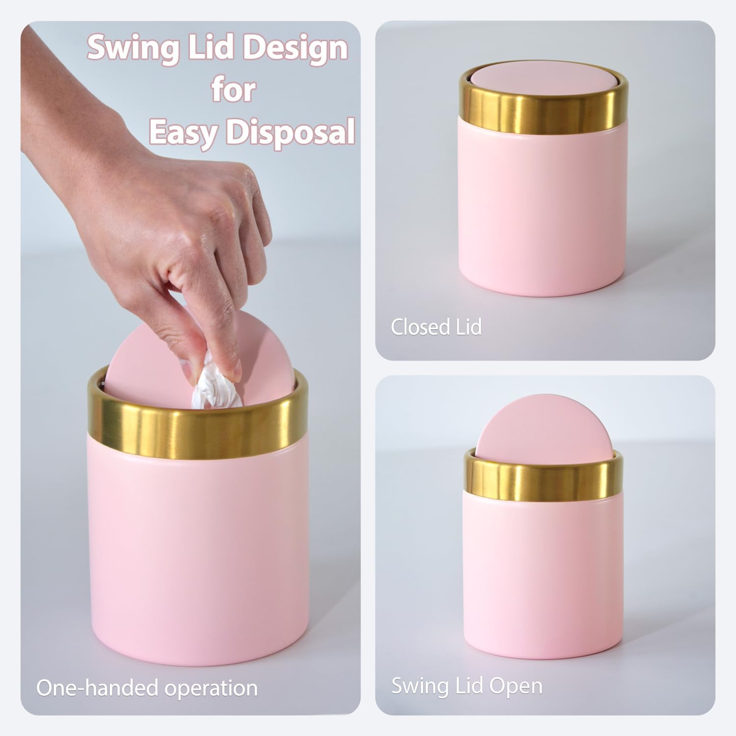 - Stylish and Functional: Made from high-quality materials, this mini garbage can adds a touch of elegance to any office or home decor.