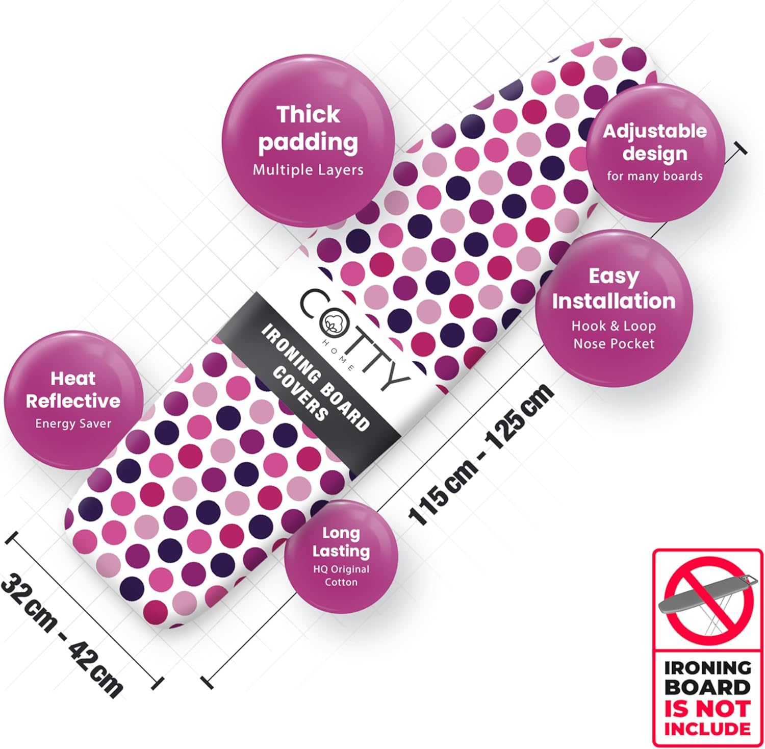 - TIME & ENERGY SAVER : The heat reflective coating of the ironing board cover allows you to iron faster and easier. Thus, you can easily do your ironing work by spending less energy and time. Also this heat-reflective coating technology durable against frequent use.