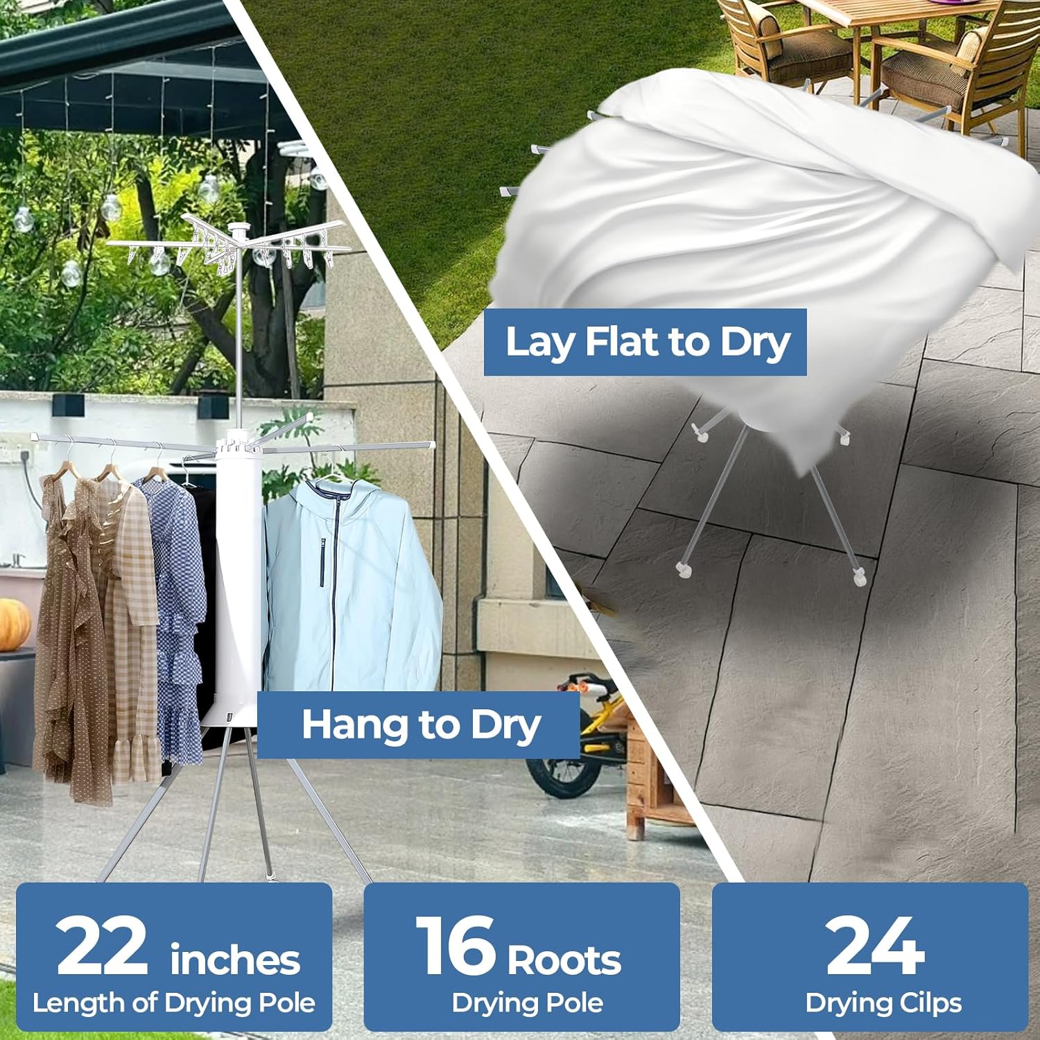 - 【Suitable for Mulpitle Scenes】Whether in a small laundry room, outdoor patio, camping site, garage, or hotel room, the folding laundry rack opens up like an octopus to meet all your drying needs effortlessly, making it a versatile solution for your laundry drying requirements.