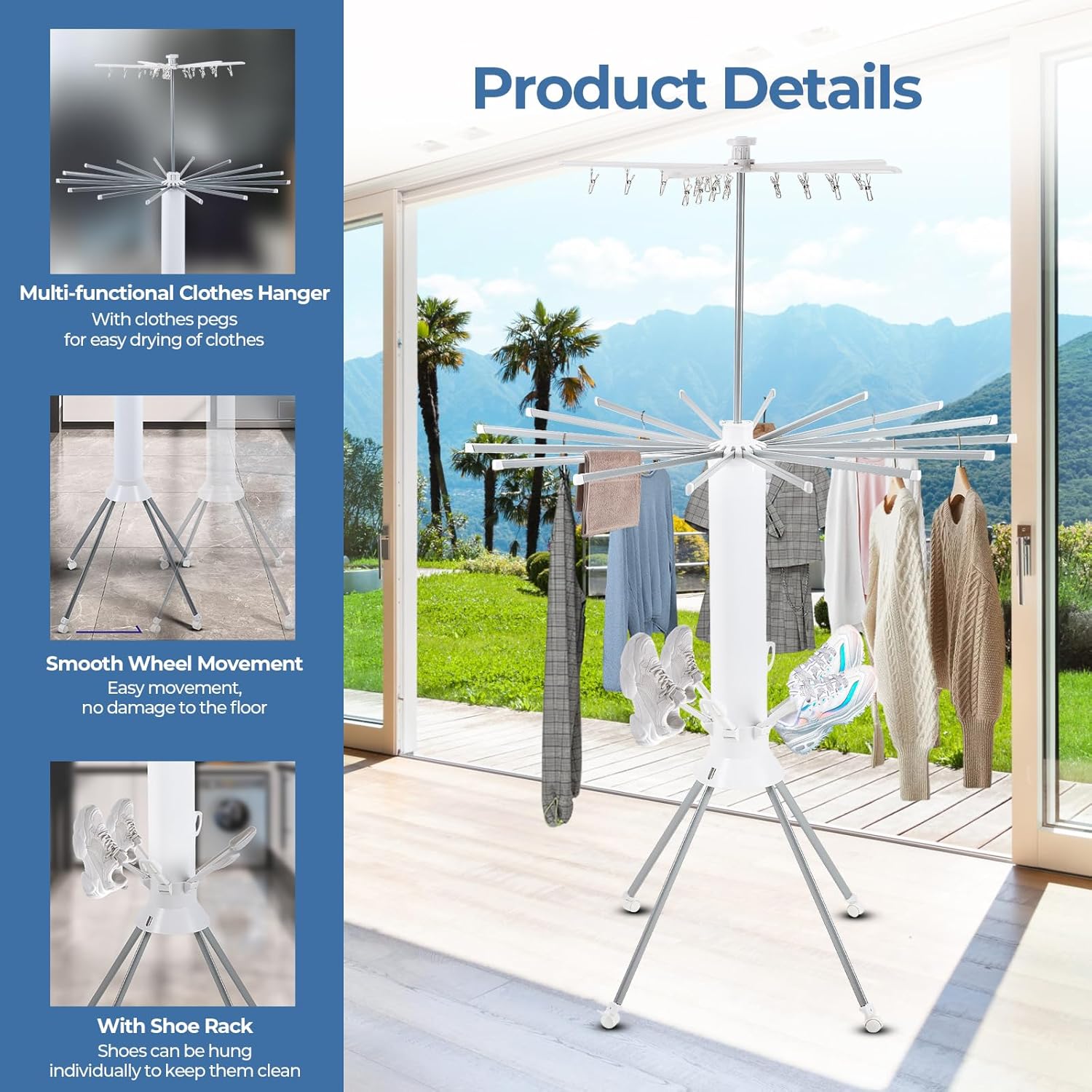 - 【Space-Saving and Easy to Store】The foldable clothes drying rack opens and collapses effortlessly, requiring no tools for assembly. Its compact design makes it perfect for small apartments, frequent travelers, or anyone looking to optimize space while drying laundry.