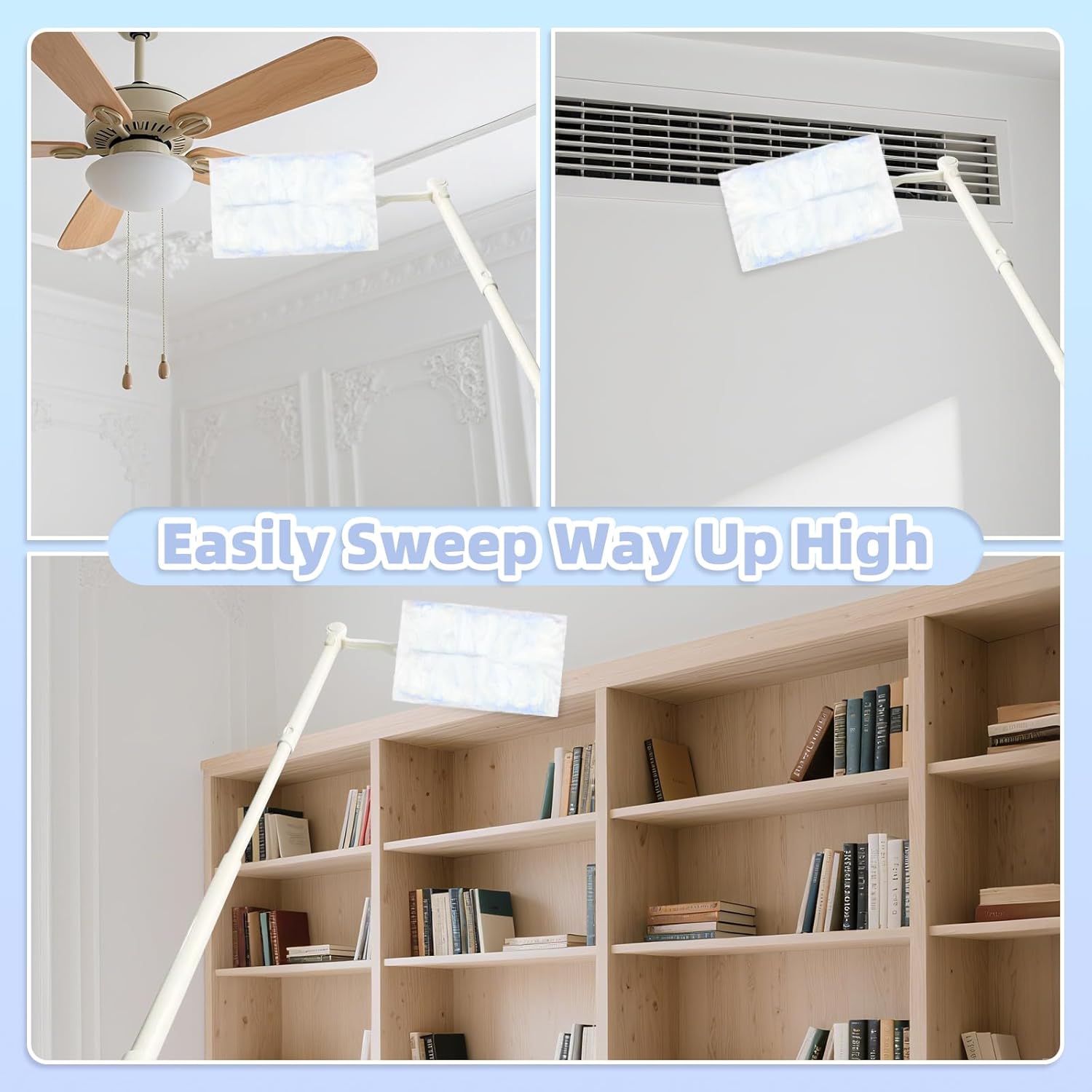 - 【Easy to use】You only need to take out the 180° disposable duster refills and insert them on the handle, and shake the duster refills evenly before use to fluff them up.