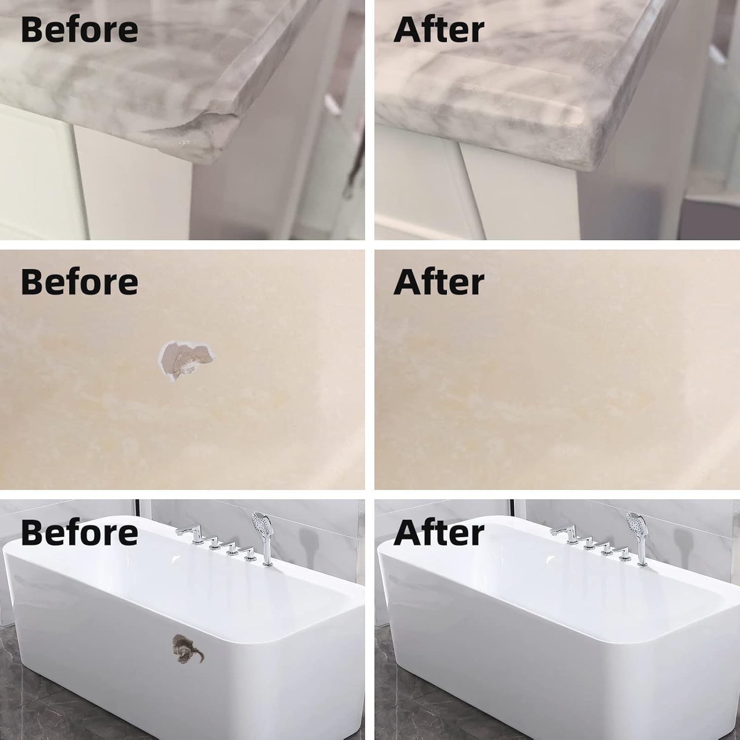 - Perfect Color Match - You can make a lot of different colors with the color gels we provide: white, beige, arctic, cream, biscuit, almond, linen, brown, bone, hourglass, ice gray, cashmere, thunder gray, black, blue, maroon, red etc. Our products are repaired without traces. You don't need to add other paint on the surface.