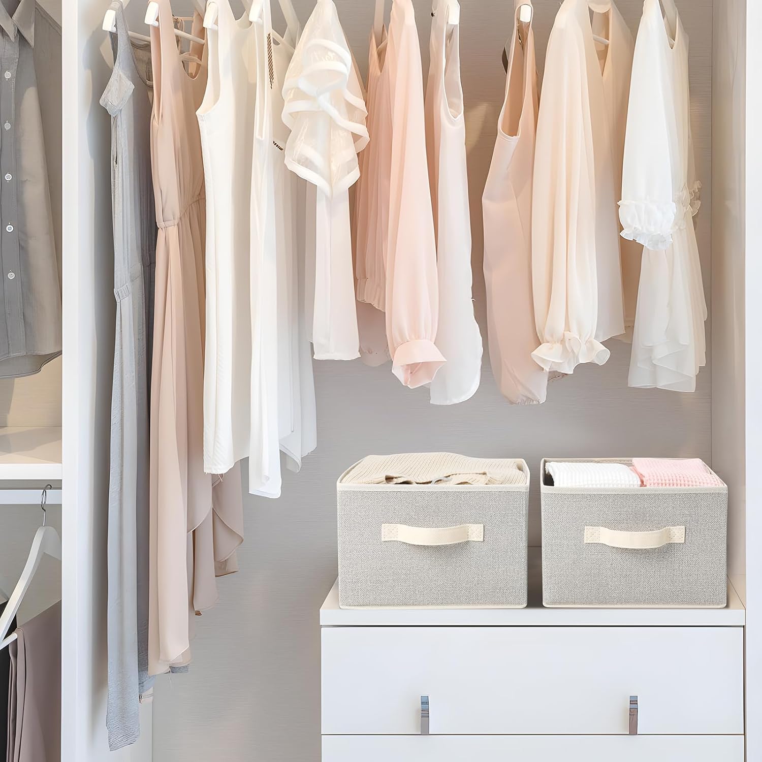 Storage Baskets, 11-Inch Woven Fabric Bins, Storage Cubes with Reinforced Handles, Organizer Bins for Closet Shelves, Foldable, for Toys, Clothes, Natural Beige (4PCS/Beige-11*11*7.8inch)