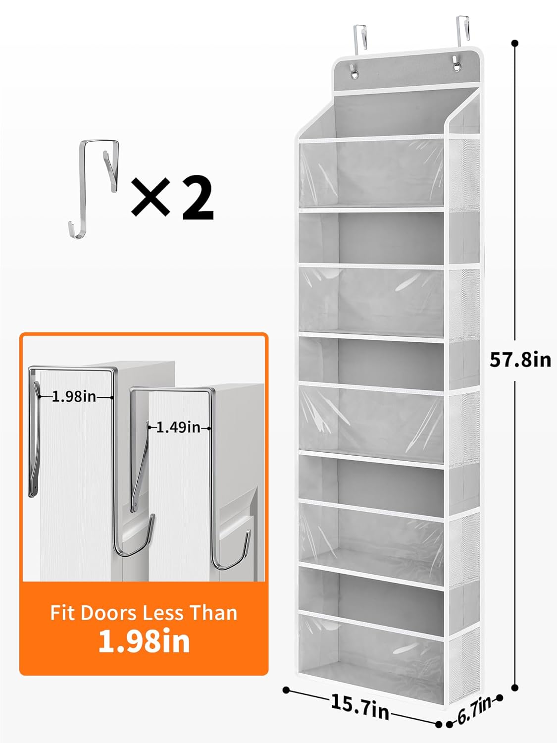 - Easy to Assemble: Set up the toy storage organizer in a mere 30 seconds. Simply hang the hook on the door, hang the organizer onto the hooks, and insert the 5 bottom cardboards. With special metal hooks designed to fit doors up to 1.98" thick, you can enjoy a hassle-free and versatile installation experience.