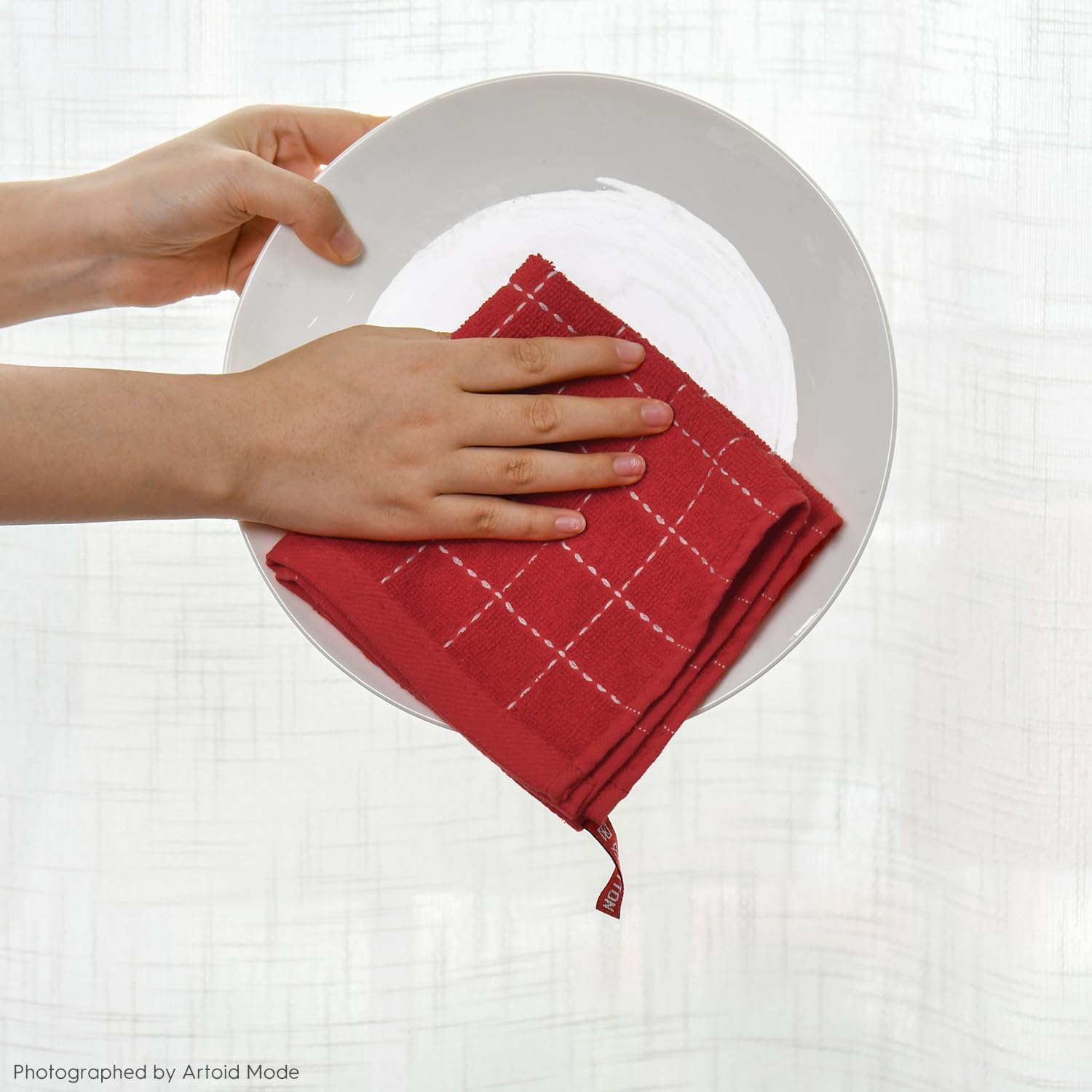 Artoid Mode Checkered Designed Cotton Red Terry Kitchen Dish Cloths, 12x12 Inch Soft Absorbent Quick Drying Cleaning Kitchen Rags Set of 6
