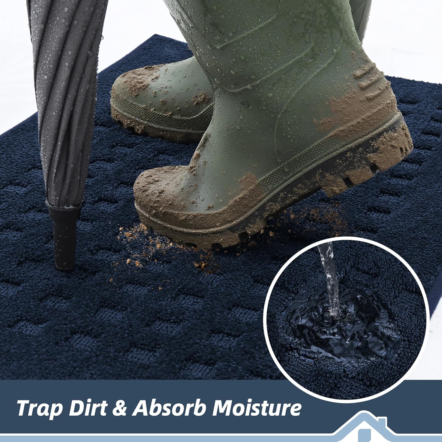 BEQHAUSE Waffle Door Mats Indoor 20"x32", Dog Mat for Muddy Paws Absorbent and Dirt Resist Floor Mats Non-Slip Washable Rugs for Entryway, Welcome Mat for Front Back Door, Muddy Wet Shoes, Navy Blue