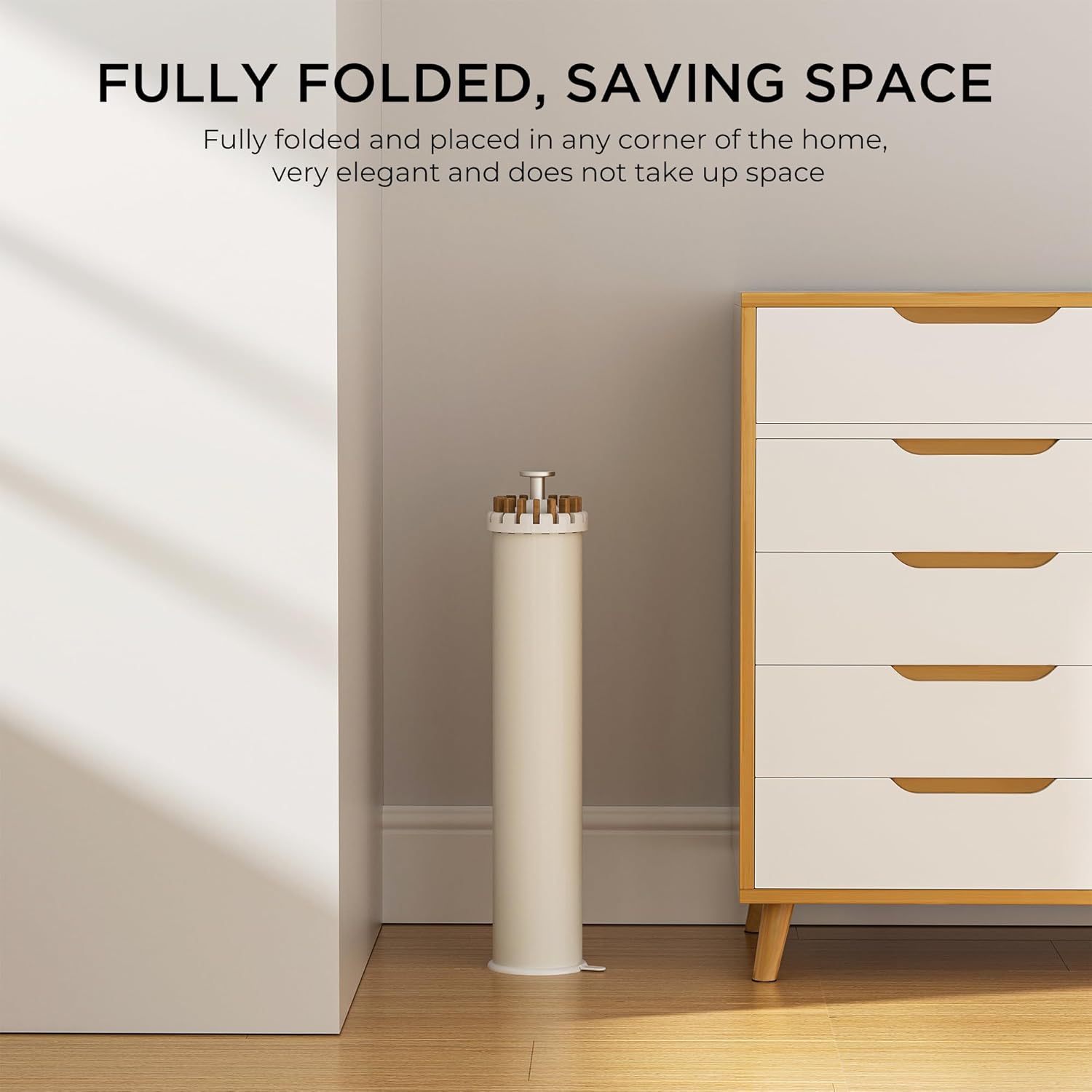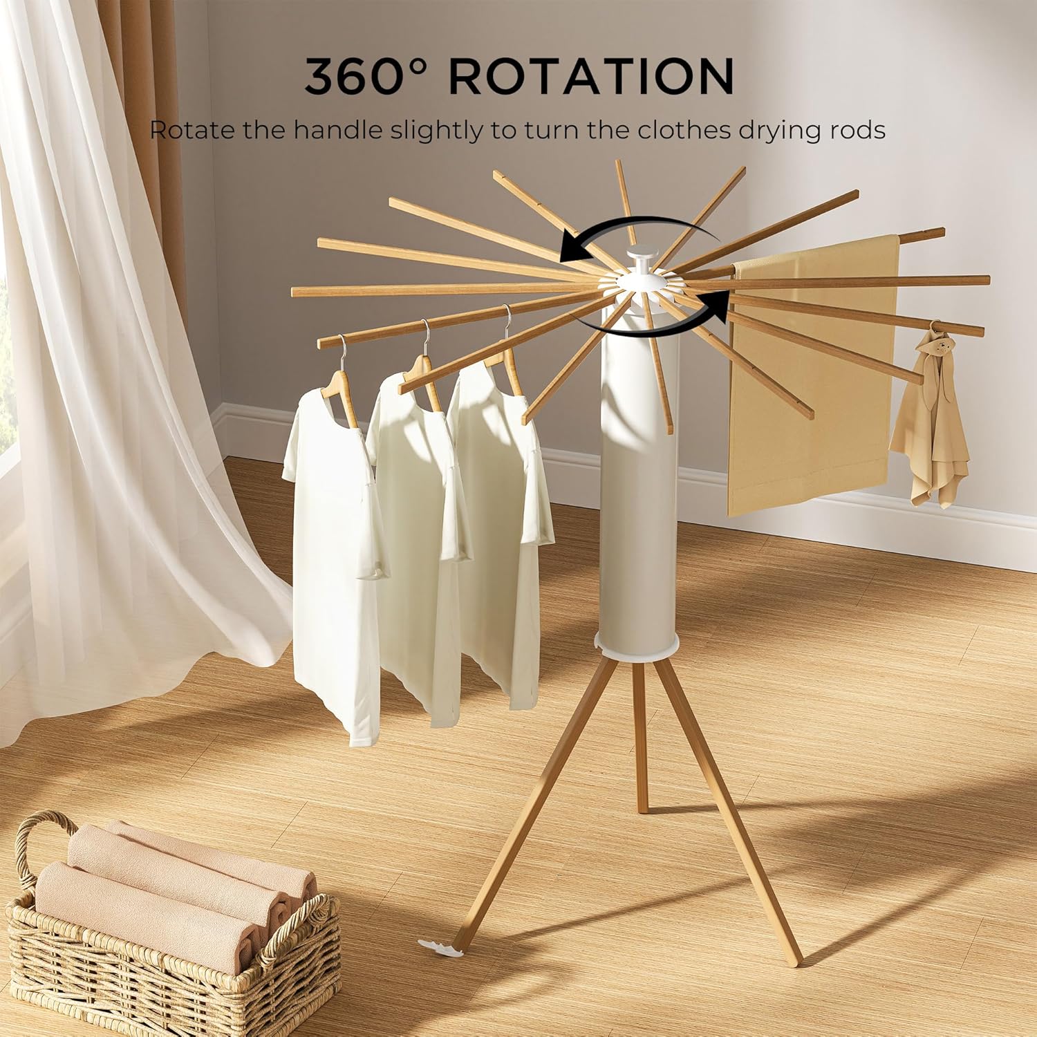 Tripod Clothes Drying Rack, Garment Rack Portable and Foldable Space Saving Laundry Drying Rack - Dryer Rack Clothing Floor Folding Balcony Bedroom Household (Beige(Wood), 16 rods)
