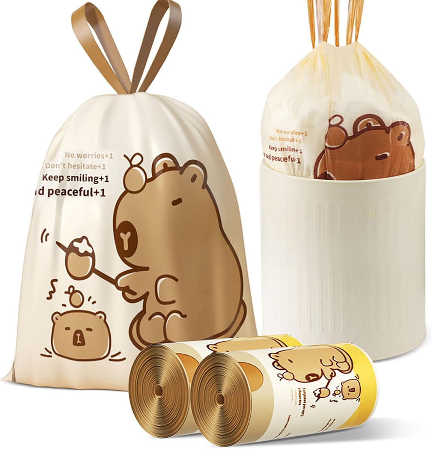 - 🦥【Adorable Capybara Print for Daily Joy】Turn your trash can into a cheerful accent! These 8 gallon trash bags feature charming capybara patterns —perfect for kitchens, offices, or playrooms. Unlike dull medium garbage bags , our design adds a smile to your routine.