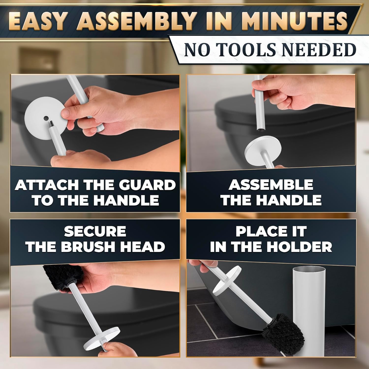 - Splash Guard: Built-in splash guard on the toilet brush cleaner and holder set helps prevent drips & splashes during cleaning, which helps maintain hygiene & simplify post-use storage of bathroom brush cleaner toilet