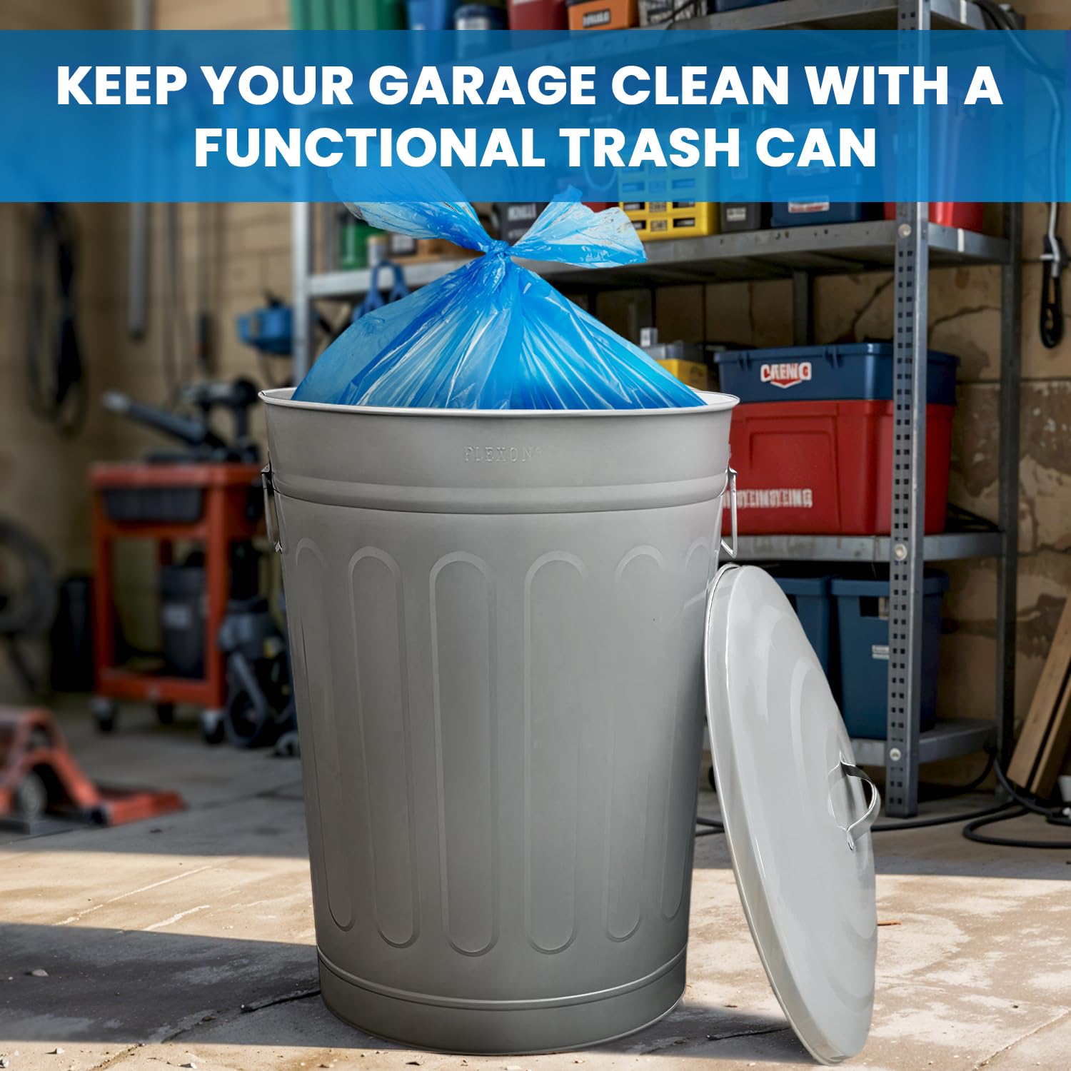 - Durable Construction: The Plexon 13-gallon galvanized steel trash can with lid is made from heavy-duty materials, perfect as an outdoor trash can with lid or a farmhouse garbage can for your kitchen, garage, or home.